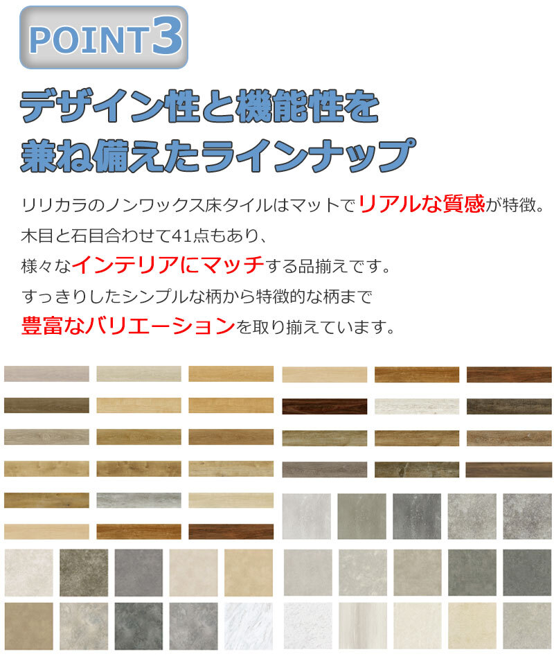 最新トレンドを取り入れたデザイン性と、耐久性 ・ 耐摩耗性に優れた商品を収録しています。