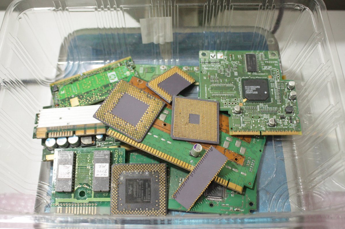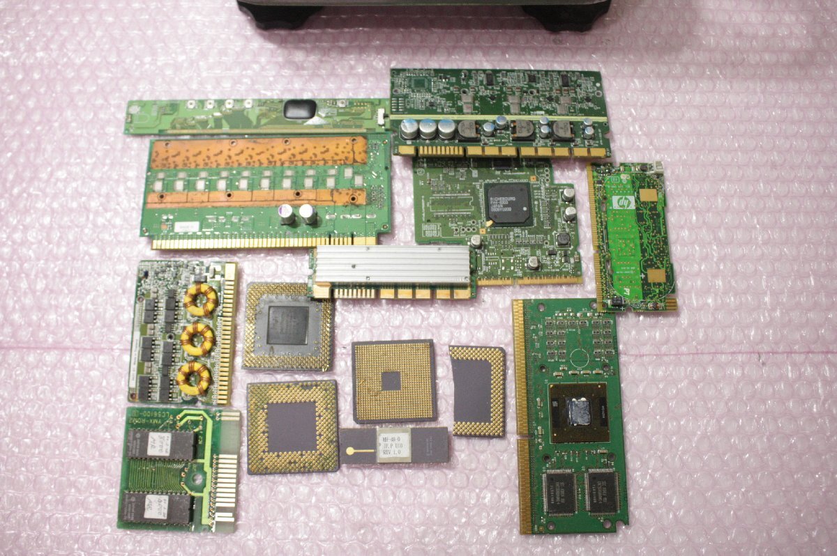 パソコンやネット機器などから回収したCPUや電子チップや基板などです。