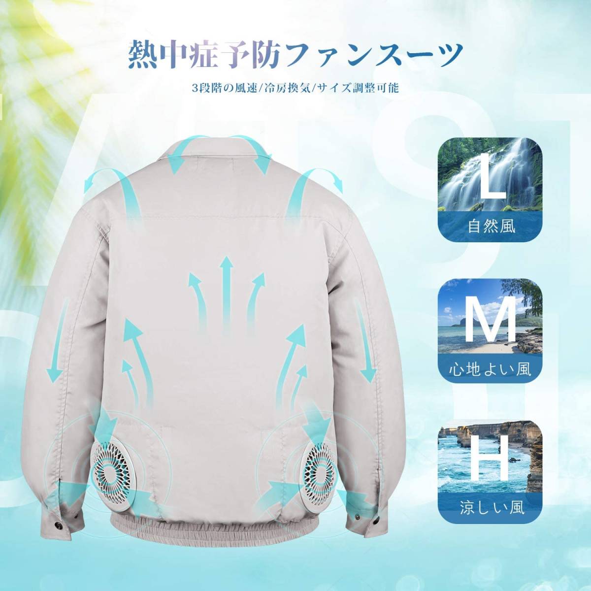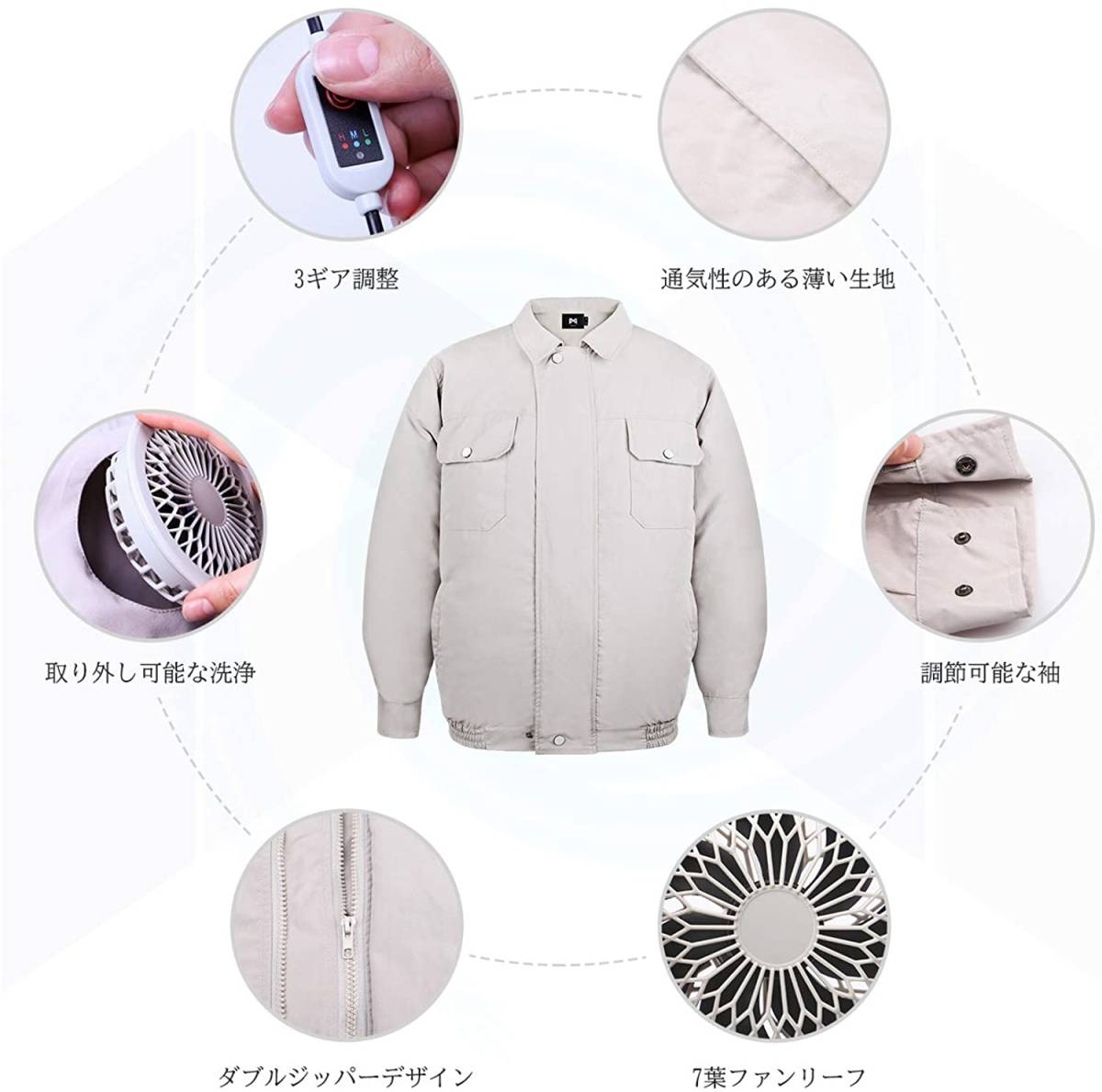 • 【強力なファン&調整可能な風速】空調服は強力なファンが装備されており、外気を取り入れ、体の表面に大量の風を流すことにより、汗を蒸発させて気化熱で体を冷やし、涼しく快適に過ごさせるための商品です。そして使用季節に応じて、調整可能な3段階の風速がありますので、春と夏に適しています。空調風神服はモバイルバッテリーで動くため、外出中でも電源の問題を心配する必要がありません。(本製品にバッテリーは付属していません)