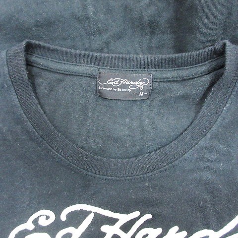 エドハーディー Ed Hardy カットソー Tシャツ ラウンドネック プリント 半袖 M 黒 ブラック /AU メンズ