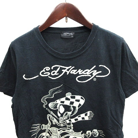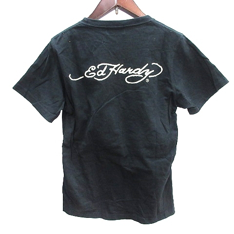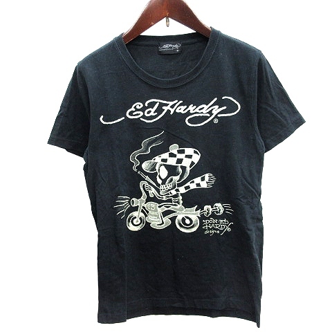 エドハーディー Ed Hardy カットソー Tシャツ ラウンドネック プリント 半袖 M 黒 ブラック /AU メンズ