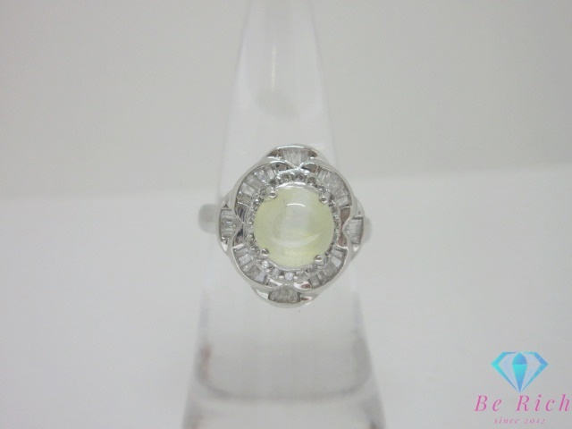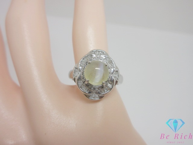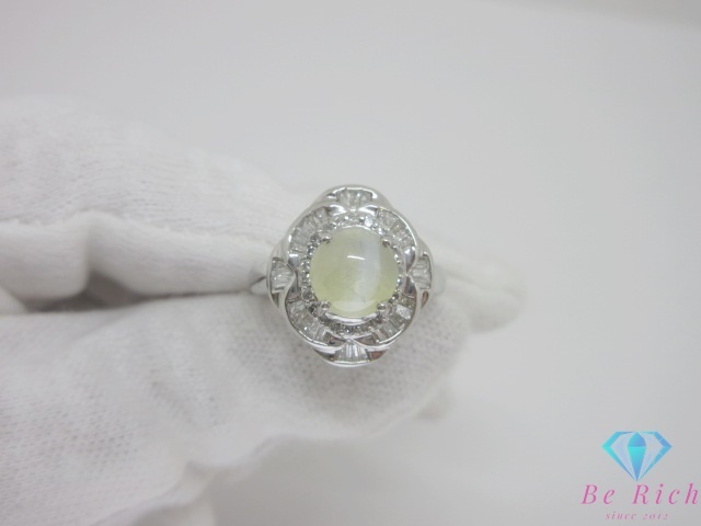 | 商品名 | Pt900 クリソベリル キャッツアイ ダイヤモンド 付 デザイン リング 指輪 | ||||