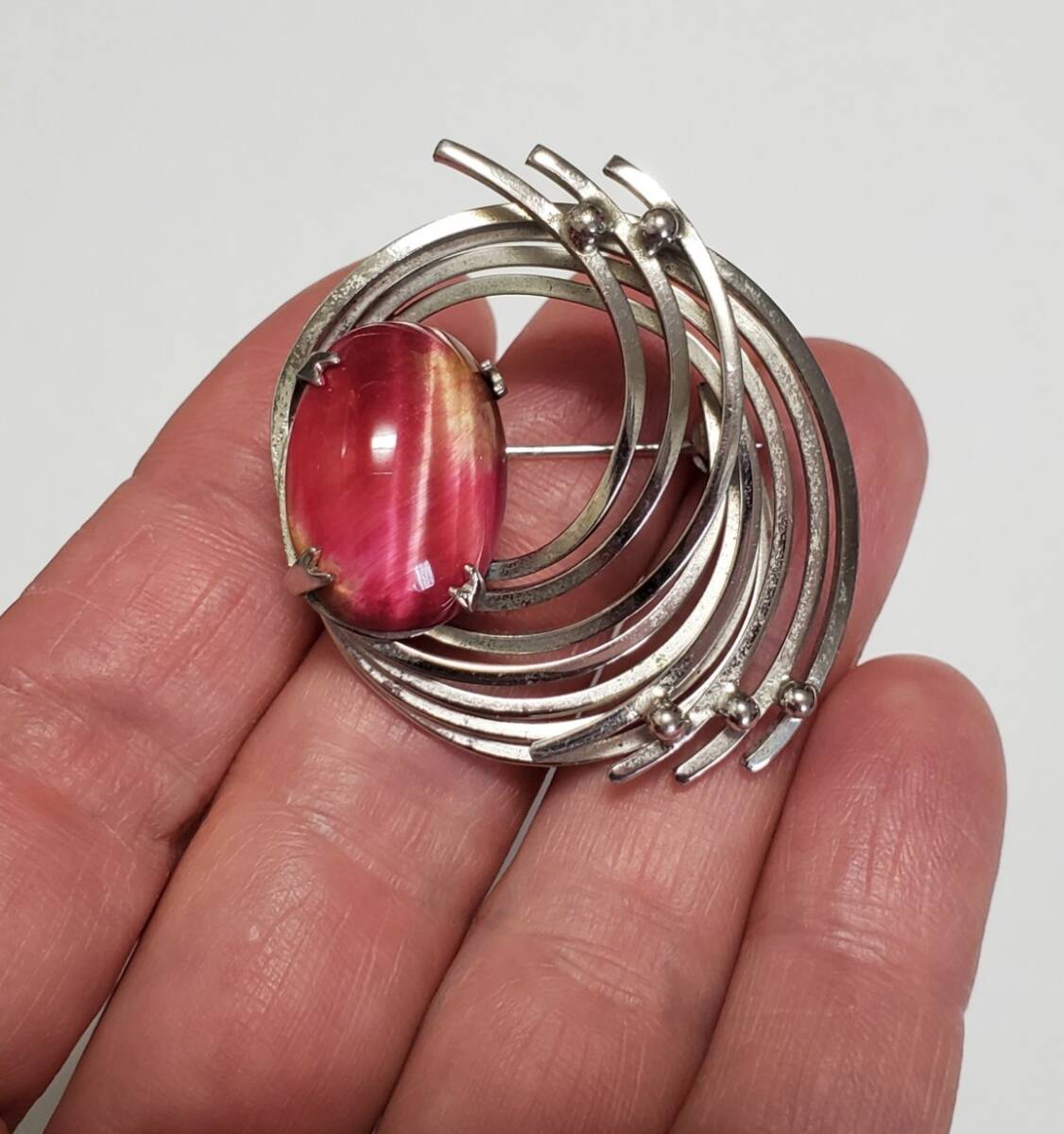 カラーストーン ブローチ シルバーカラー レディース 11,2g