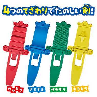 剣の手触りはカクカク(赤)・ナミナミ(青)・ザラザラ(緑)・キラキラ(黄色)の4種類!