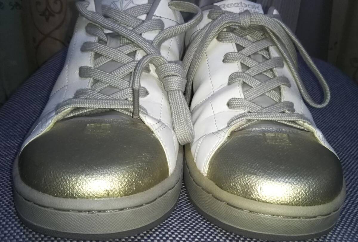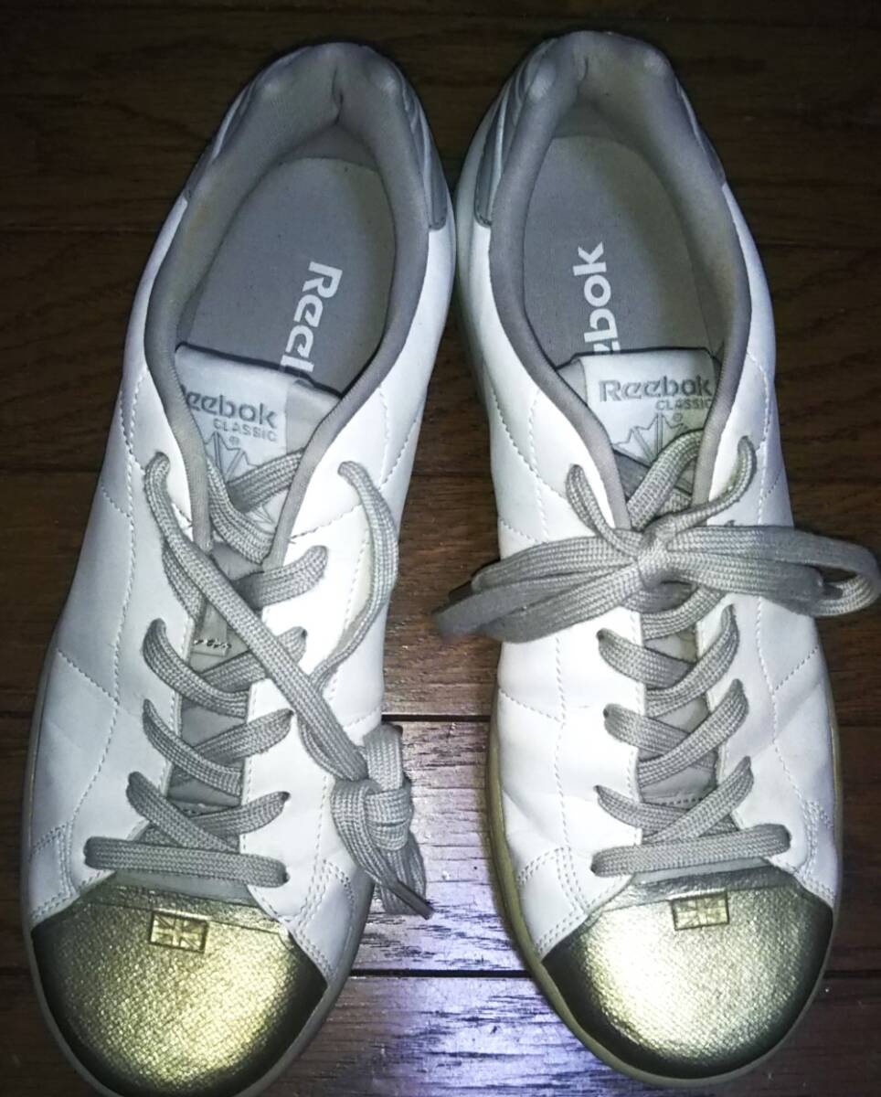 即決・送料込★Reebok リーボック★良品・コート系 タウン スニーカー RB810★白x灰x金 US8.5(26.5cm)