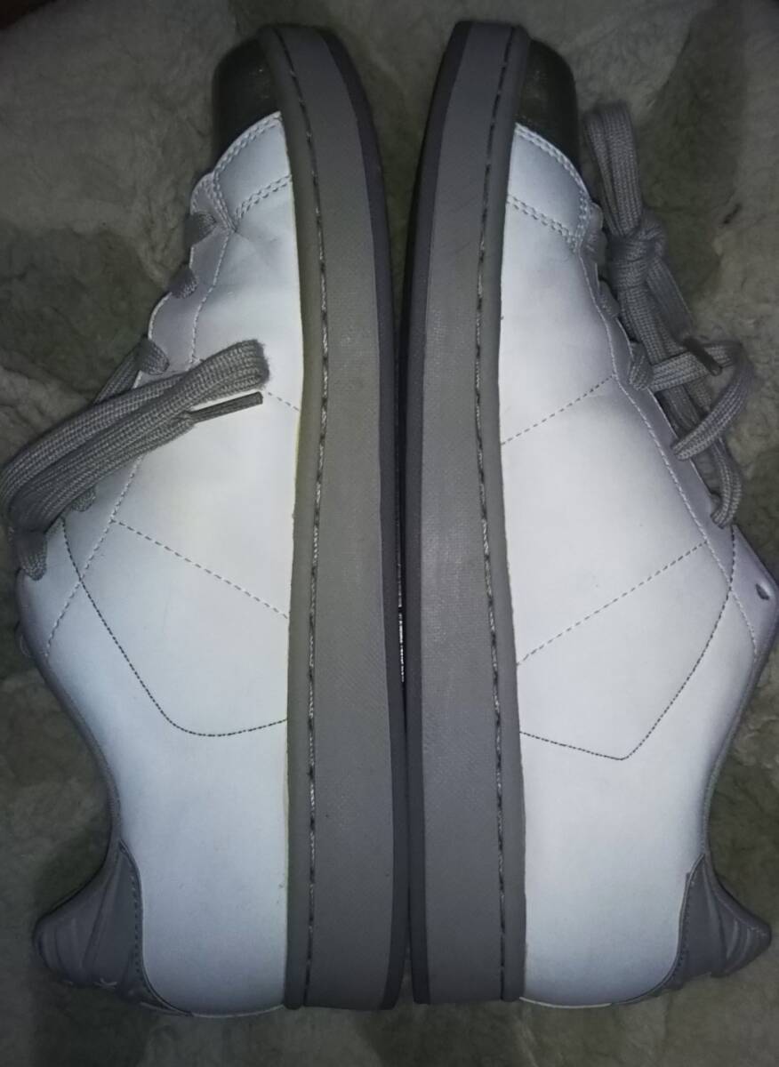 履き口踵のロゴに傷箇所、インソールのプリント剥げありと使用感あるも、踵の減りほとんどなく、特に目立つ傷み・汚れない良い状態です。
