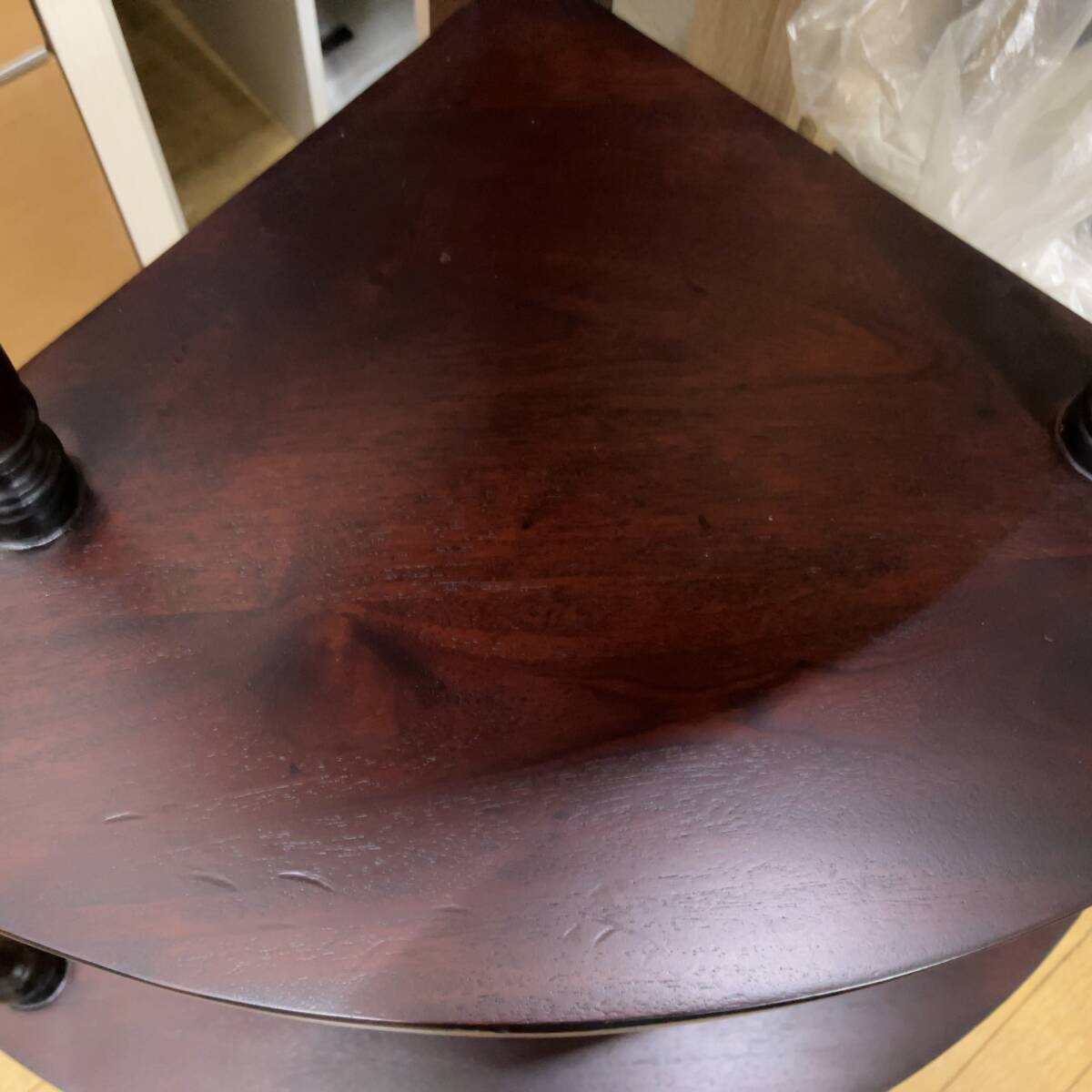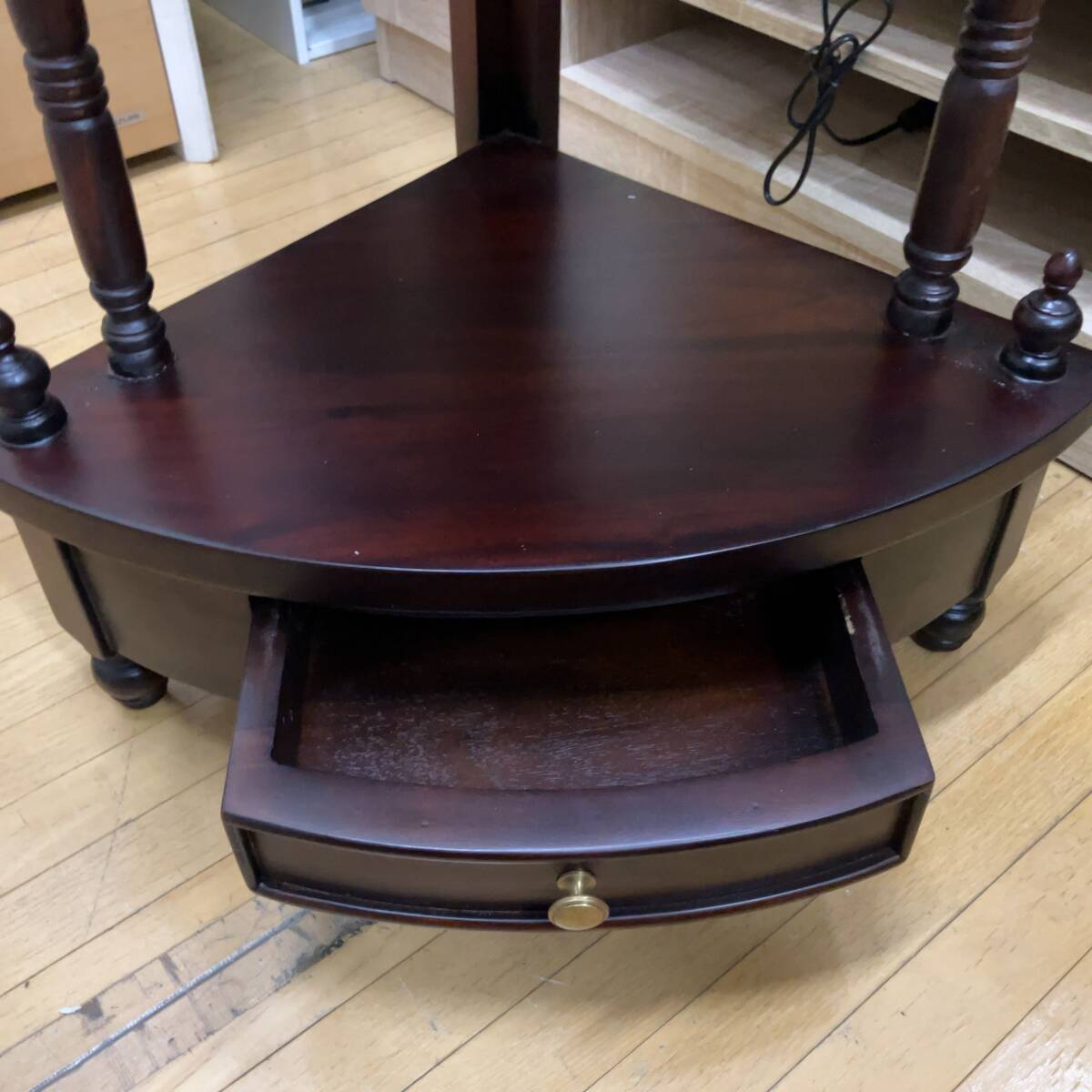 即決/英国家具 Bally William (バリーウィリアム社)コーナー キャビネット マホガニー アンティーク調 クラッシック シェルフ 4段 レトロ デザイン 木製 輸入家具 ※インターネット参考価格 74,800円 ※英国家具 Bally William (バリーウィリアム社)と記載しましたが、画像検索で付けました、 画像で判断の出来る方などの入札をお願い致します。 ・2ヶ所の修理品です、画像で指で指してる部分ですが、支柱が抜けてましたので接着しました、接着痕は有ります。 ・古い物かどうか分かりませんが、多少のキズなどは有ります。 ※サイズですがスケールで測りましたので約です。 ・高さ120㎝ ・1番下の棚の幅57㎝ 奥行(裏の柱も入れて47㎝) ・下から2番目の棚の幅49㎝ ・3番目の棚の幅40㎝ ・1番上の棚31㎝ 棚は三角形見たいな形ですので幅は、前側の1番幅が有る部分で測りました。 |