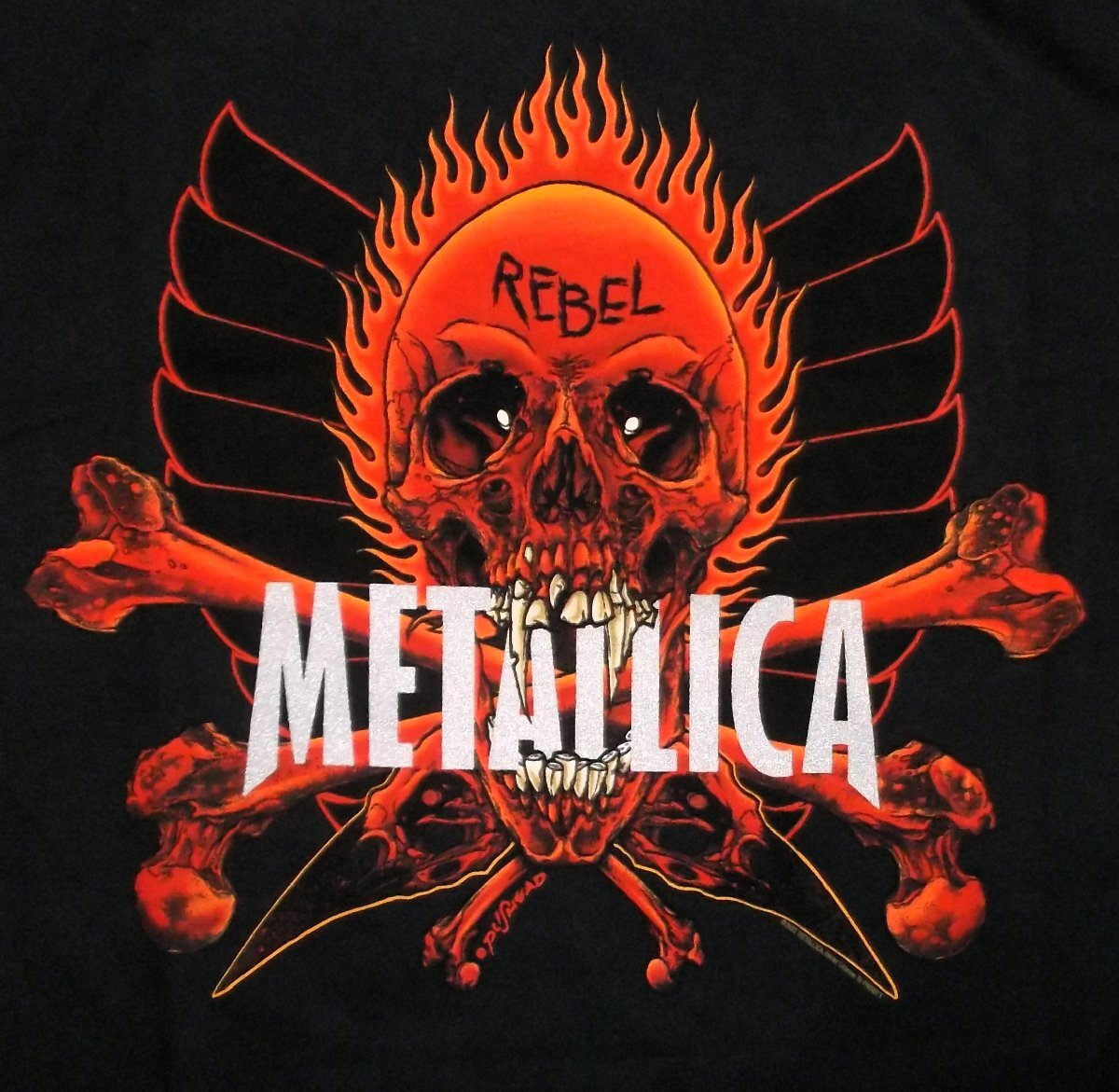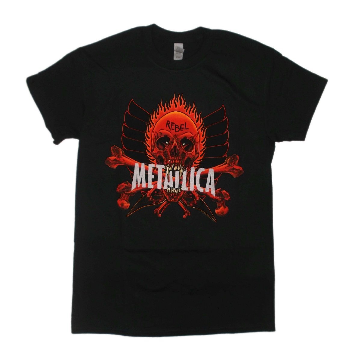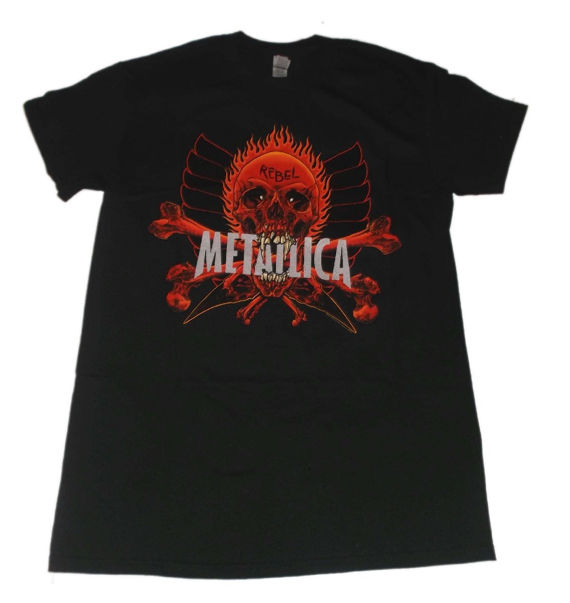 | METALLICA T-SHIRT: REBEL 正規品 Official licensed Metallica Unisex T-Shirt featuring the 'Rebel' design motif. High quality T-Shirt available in a black colourway. メガデス、アンスラックス、スレイヤーと共にスラッシュメタル"BIG4"と形容された一角として君臨する、重鎮メタリカのTシャツ「REBEL」です。 PUSHEADが94年のツアー「Summer Shit '94」に描いたFLAMING SUN(Skull)、 バンドロゴを咥えたそのFLAMING SUNを正面から捉えた迫力のデザインです!! 新品・正規品 XLサイズ 体格のよい方、大きめに着こなしたい方によいかと思われます。肩幅57cm, 身幅58cm, 着丈76cm 郵メール便送料¥250(代引き不可・紛失補償なし) ACE CAFE LONDON、LUCKY13、THRASHER、Sailor Jerry等~アメキャラ・企業ロゴ等ライセンスTシャツ、RATFINK関連品、バンドTシャツ等取り扱っております。 ** 他にも色々出品中です。 CWBT cwktw IWTS | |||||||
