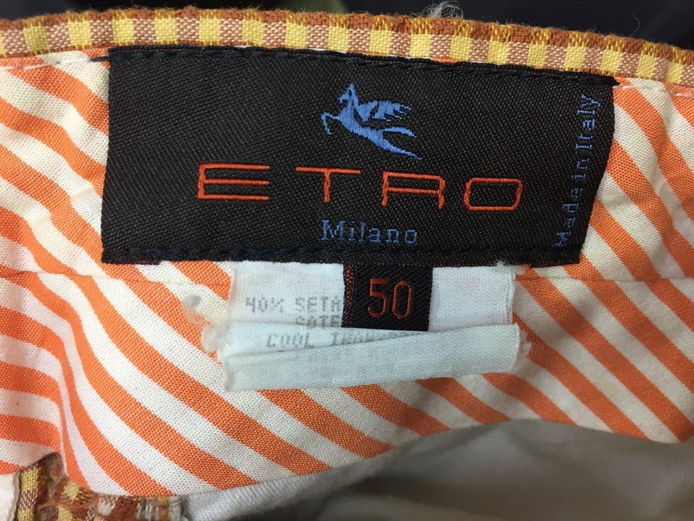 ETRO エトロ イタリア製 シルク混 チェック柄 スラックス パンツ 中古品。通常の着用に伴う状態。 |