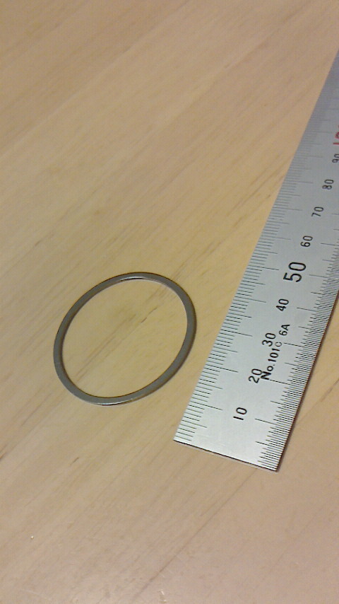 外径φ40、内径Φ36、厚さ1.0mm になります。(ノギスによる実測です)