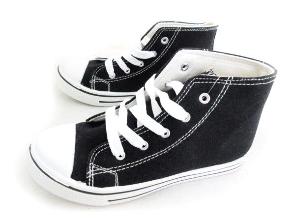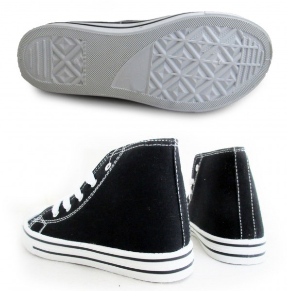 1円~AL838新品AAAミッドカット/レースアップスニーカー19㌢黒×白♂