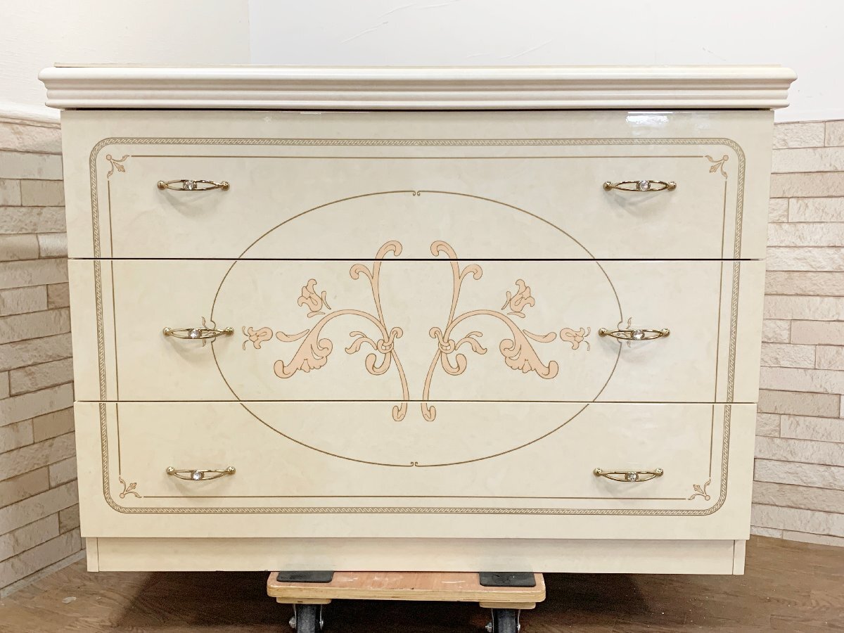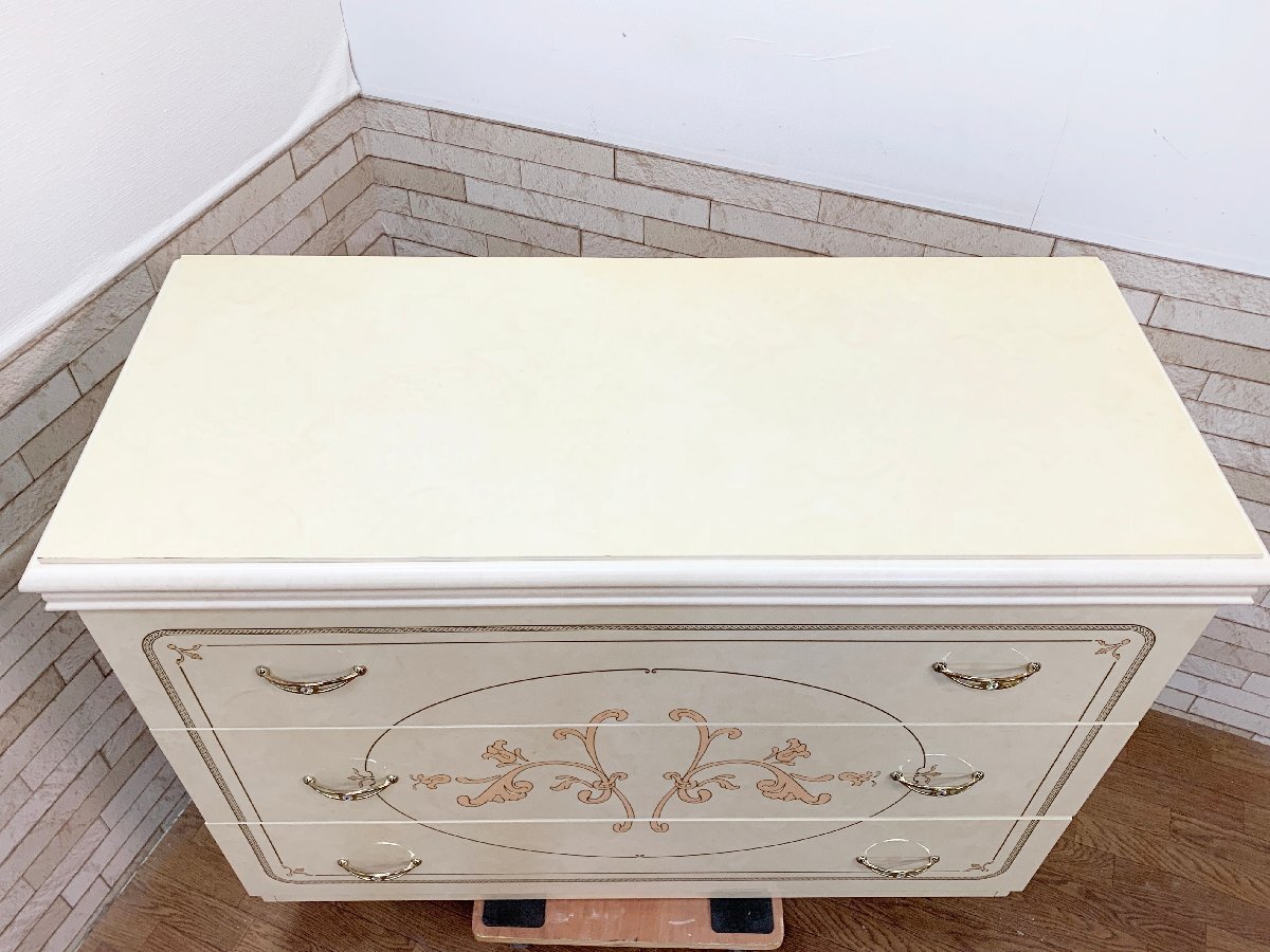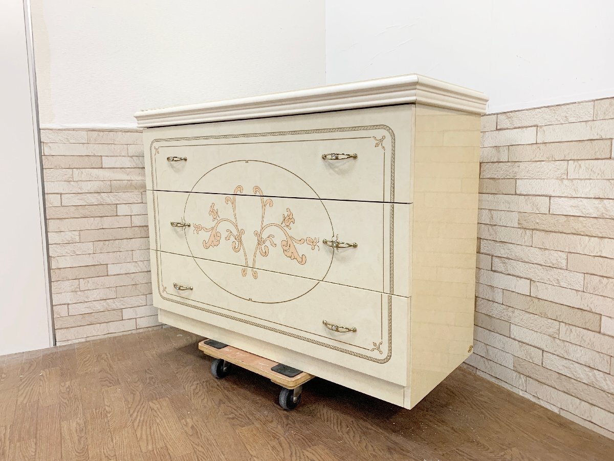 サルタレッリ モビリ 3段 ワイドチェスト 高級イタリア製 アンティーク アイボリー ロココ 家具 整理箪笥 箪笥 家具 インテリア