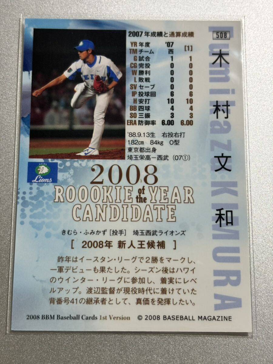 2008BBMベースボールカード1st 508 木村文和 西武ライオンズ 2008年新人王候補