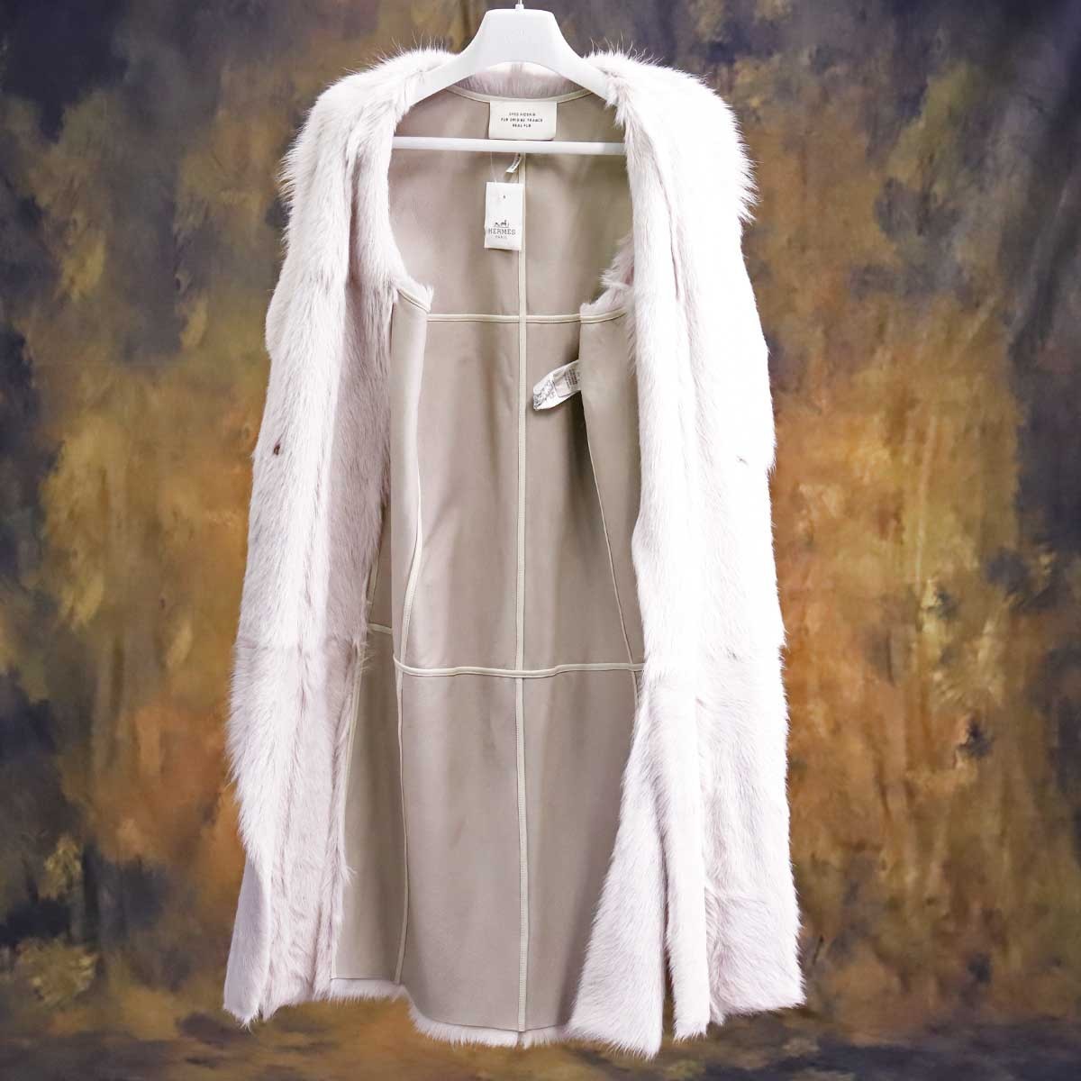 エルメスのランウェイダブルフェイスファームートンロングジレコートです。 ランウェイにも登場した極上のキッドファーとムートンのダブルフェイス仕立て。 この上ないラグジュアリーをお愉しみ頂ける一枚となっております。 前留め釦ゆるみをエルメスジャポンにて正規メンテナンス完了済。 |
