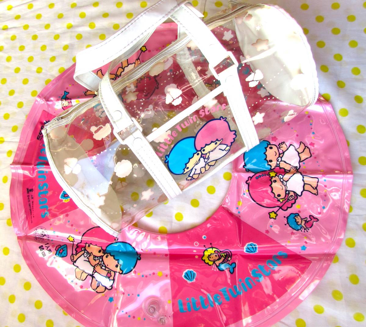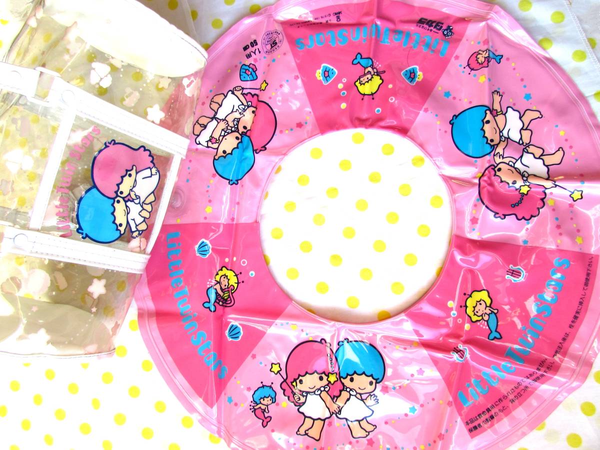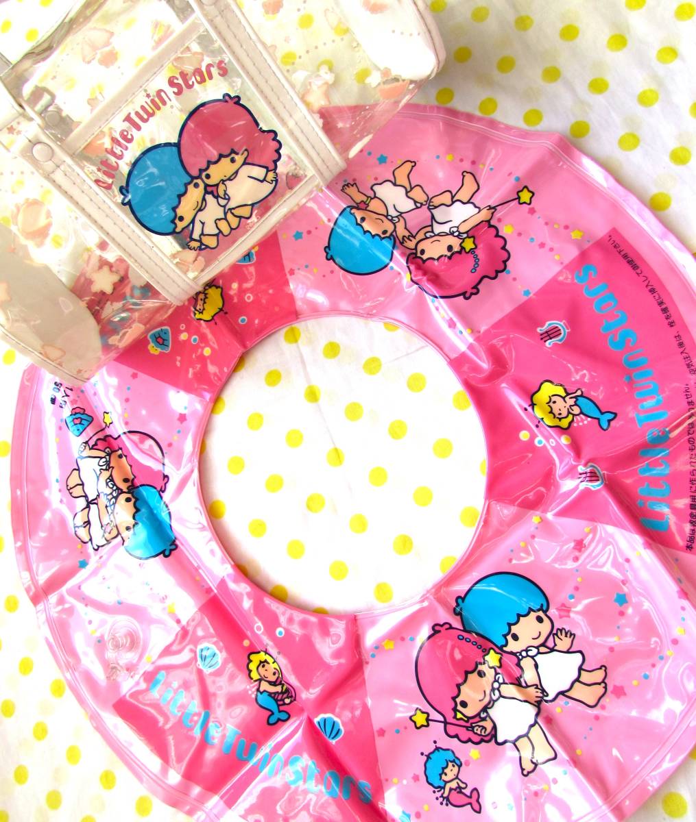 激レア♪80年代昭和レトロ☆リトルツインスターズ50cm浮き輪ビニールバッグ☆サンリオ入園キキララスイミングファンシー文具プールバッグ