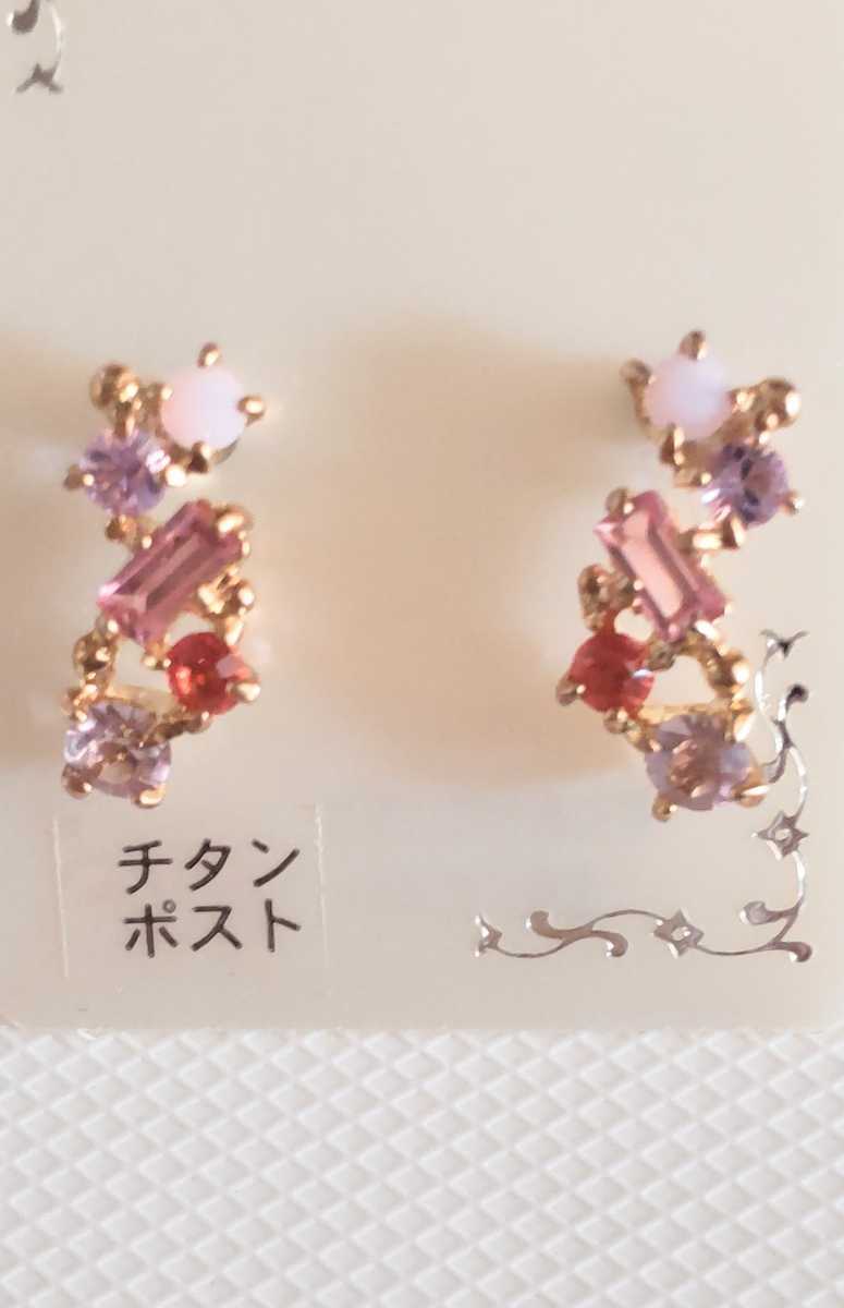 こちらは、Espoir ピンク系 クリアストーン チタンポスト スタッドピアス になります♪