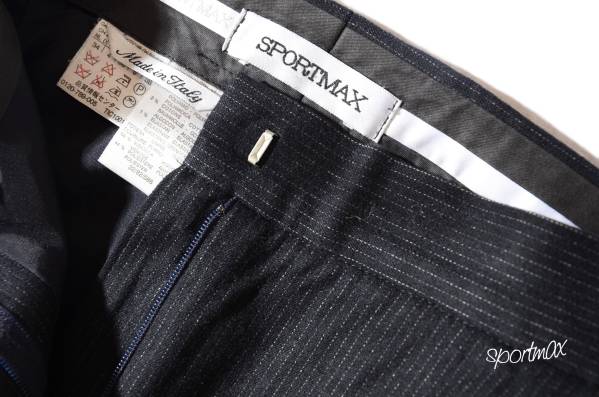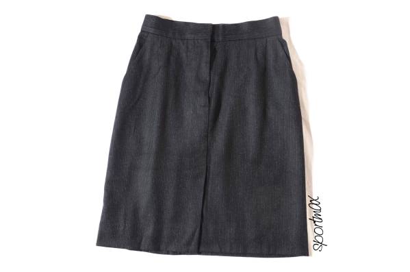 スポーツマックス 黒ピンストライプ ひざ丈タイトスカート ウール