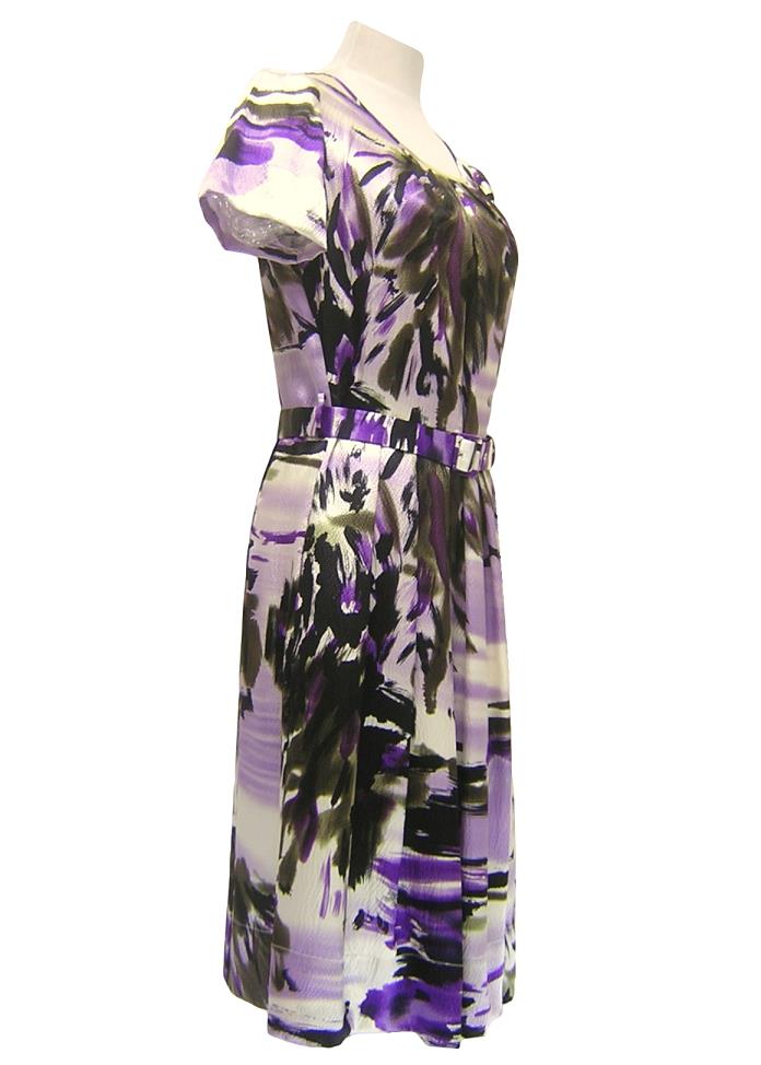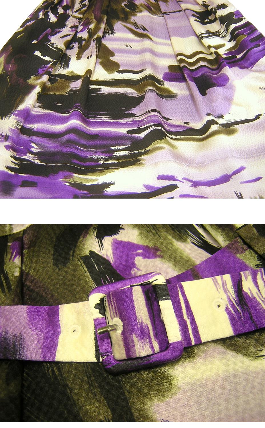 VIVIENNE TAM の香港製、 プリントシルクワンピースでございます。 裏地なし/サイドファスナー/ベルト取り外し可 | |