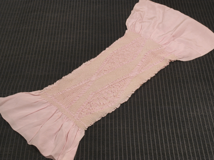 【絞り】撫子色無地 小紋菱文 中抜き 縮緬 帯揚げ アンティーク TAJL03015風楽 |