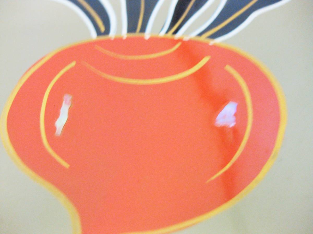 □ 赤かぶの絵がデザインされた皿と竹箸のセットです