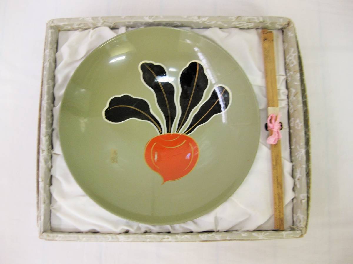昭和レトロ 赤蕪 象嵌 皿 装飾皿 当時物 日本 非売品 竹箸  インテリア