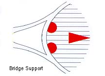 ※1 ラケットの中でブリッジは弱い部分です。縦のガットを牽引するとブリッジがハンドルから離れる方向に力がかかります。 ストリングウェイのワイドサポート設計はこの力を分散させ、ラケットにかかる負担を軽減します。このことから、ブリッジのサポートは非常に大事であり、ストリングウェイのワイドサポート 設計はガットを張る上で重要なものと言えます。