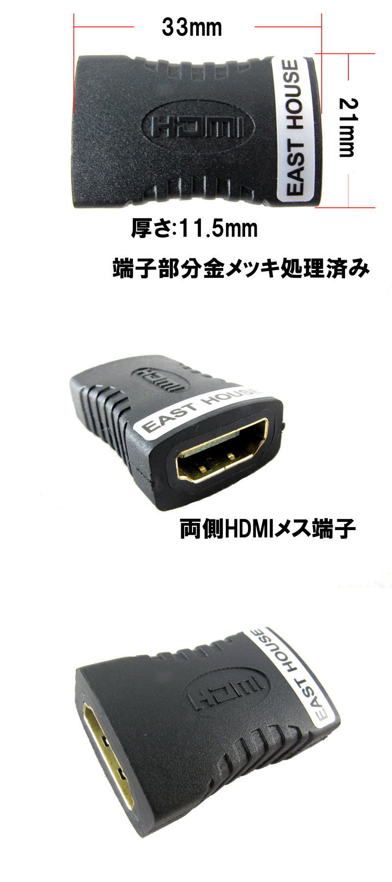 ●あったら便利なアダプター テレビやディスプレイのHDMI線を延長するためのアダプターです。 ●メス―メスで余っているHDMI線を無駄にせずに使用できます。 ●端子部分金メッキ処理済みの高級仕様です。単体では画質の劣化もありませんが、線が長くなればなるほど劣化します。ご注意ください。 ●寸法:全長33㎜ 幅21㎜ 厚さ11.5㎜のコンパクト設計 |