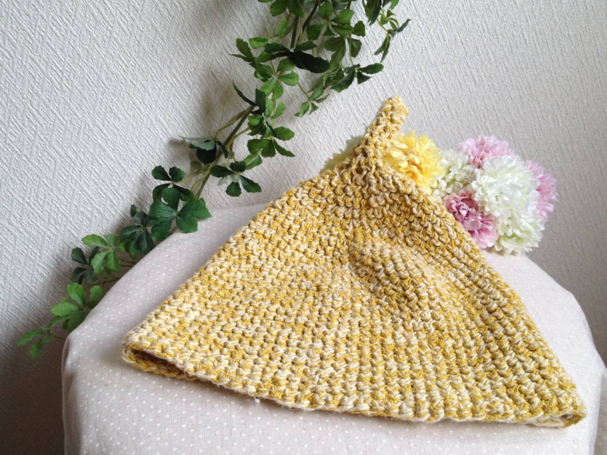 黄色ミックスの可愛いとんがりニット帽です。