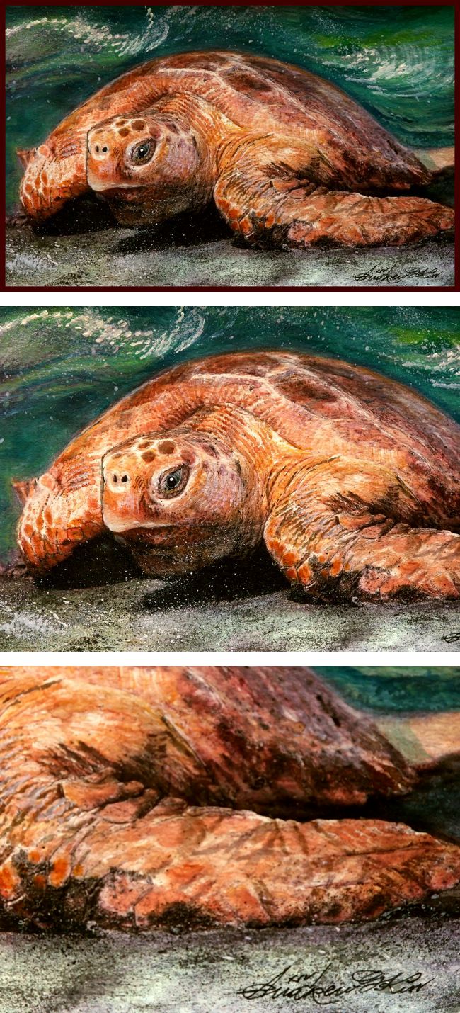| 美しい水彩画「産卵場所を探すヒメウミガメ」 | |