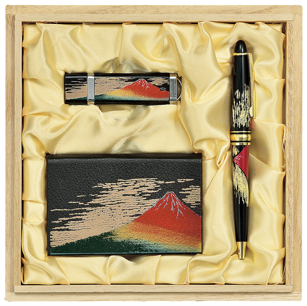 《只今!20%値下げ中》濱田屋【創作漆器】ステーショナリーセットL赤富士(B)