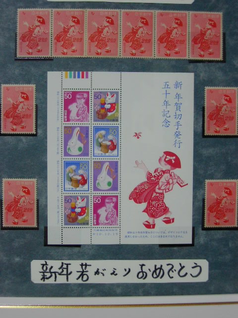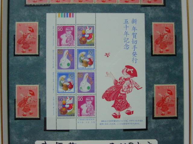 額入り・インテリア アート !! 未使用品 「縁起 羽根つき」 年賀 赤切手 & 羽根つきシート / 特別企画 ( 八 )