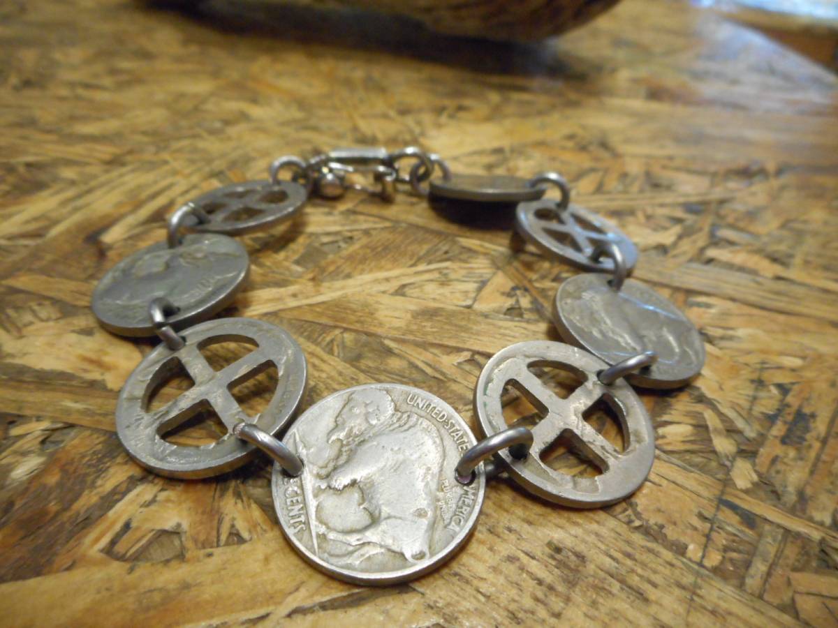 アメリカ硬貨☆ホイール☆コイン☆ブレスレット☆インディアン☆バッファロー☆5セント☆ハーレー アメリカン好き☆コインブレスレット