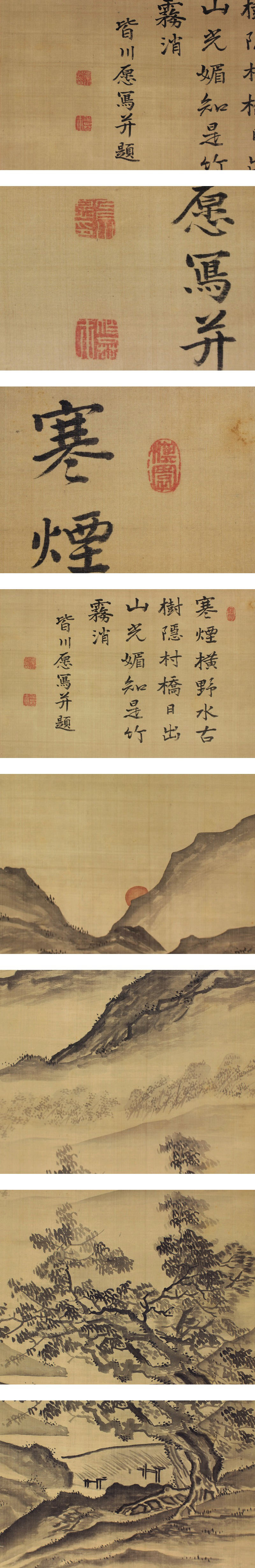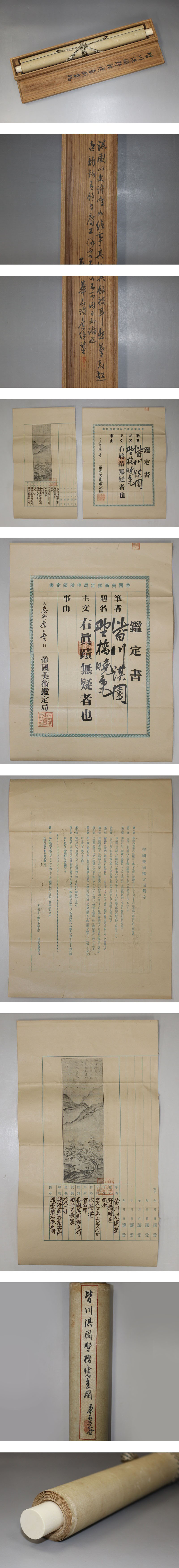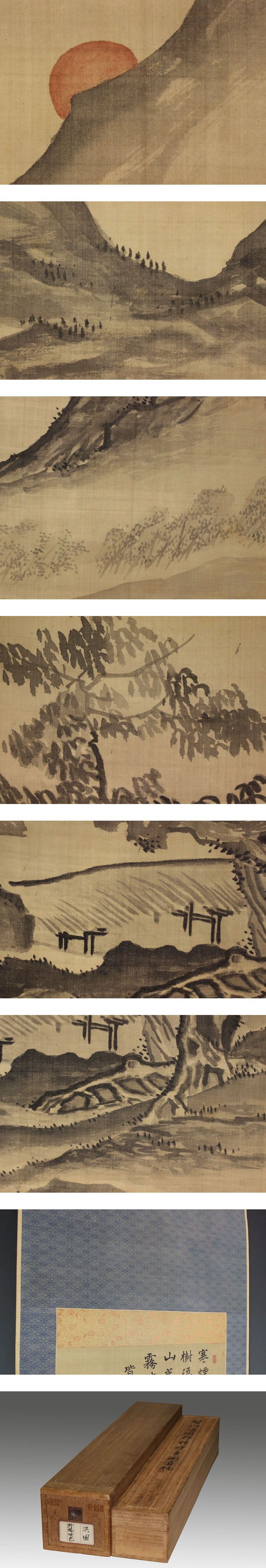 | №1606055【真作】皆川淇園【野橋暁色】◆絹本◆華石識箱◆二重箱◆掛軸 | |