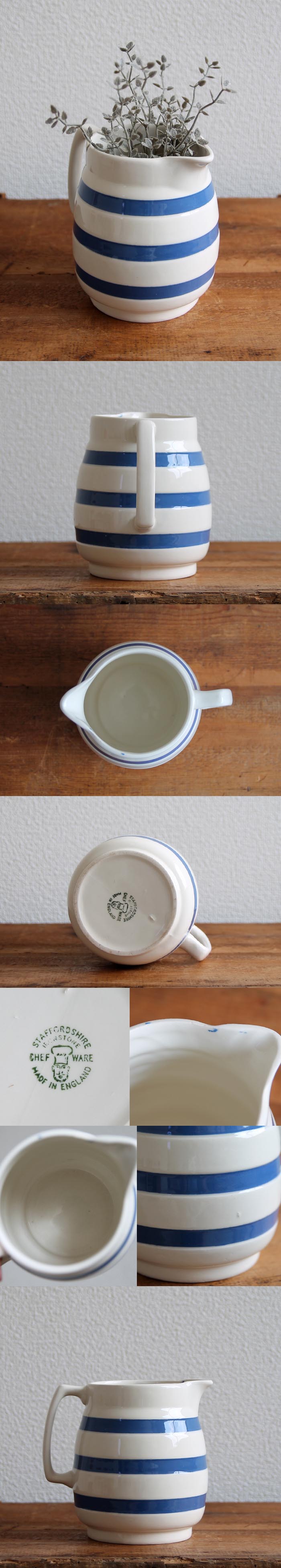 イギリス アンティーク CHEF WARE 陶器ミルクジャグ/コーニッシュウェア/食器【定番ブルー&ホワイトのボーダー柄】Y-182
