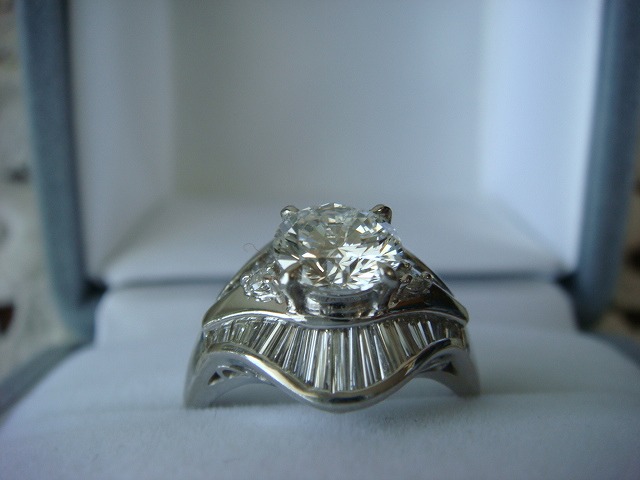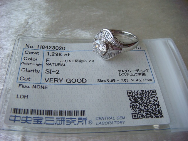 | ご覧頂きましてありがとうございます! 大きな1,298カラットダイヤモンドリング。サイズは約14です。プラチナ製です。Pt900の刻印入り。 ダイヤモンドのカラーはF クラリティーはSIー2 カットはVERY GOODです。ソーティング付き。 重さは約8,4gです。周りのダイヤは0,79カラットです。 追加画像がありますのでパソコンでご確認ください。 宝石との出会いは一期一会です。『いいな』と思ったら是非、身につけてあげて下さい。きっと宝石も喜ぶことでしょう! 宝石は決して貴女を裏切りません。身につけた貴女を守ってくれることでしょう。 いつも頑張っている自分へのご褒美にいかがでしょうか? 良いものをひとつお持ち下さい。一生物のジュエリーとなります。 画像での判断は難しいと思いますが、落札後の返品、クレーム等の無きよう、ご自分の自己責任においてご入札下さい。 モニター、パソコン、カメラによって色や感じ方が変わりますのでご注意下さい。 商品についてはコレクター、質屋さん、お客様の委託品が中心ですので、ご質問の答えが遅くなる事がありますがご了承下さい。 商品説明につきましてはすべてをお知らせできませんので、質問にてお願いいたします。 基本的にはUSED品ですので、その点を十分にご理解の上ご入札下さい。 途中で出品を取り下げる場合もありますがご了承下さい。 尚、トラブル回避の為、申し訳ございませんが、新規の方及び評価によってはこちらで入札を削除させていただく場合もございますが、ご理解下さい。 メールの確認は夜になりますのでご連絡が遅くなることもありますがご了承願います。 品物にも人と同じように『こころ』があると思います。喜んでいただけることが私にとっても品物にとっても一番良いことだと思います。 『落札したけど気に入らなかった』ということが無いように十分にお考えになってからご入札下さい。 発送は宅配便を予定しております。また発送には2,3日かかる場合もございますが、ご了承願います。 お互いに気持ちよい取引のため、落札後3日以内のご連絡、5日以内のご入金頂けない場合は申し訳ございませんが取り消しさせていただきます。 落札金額より僅かですが『子ども虐待防止 オレンジリボン運動』へ寄付をさせていただきますがご了承お願いいたします。 | |