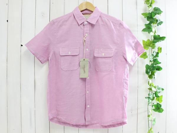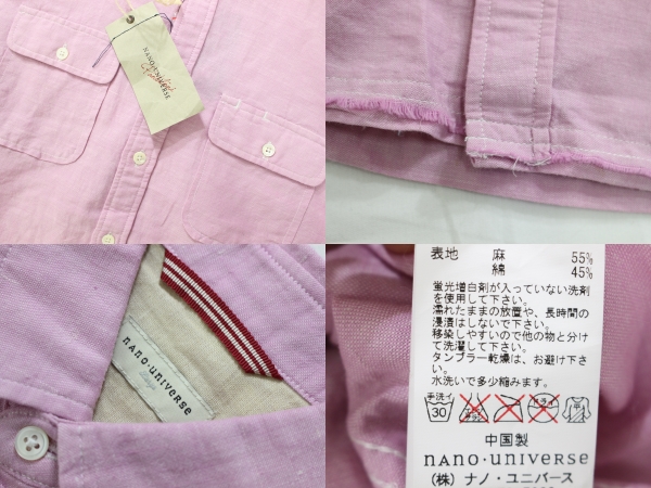 新品*nano universeナノユニバース*半袖リネン混カラーシャツL