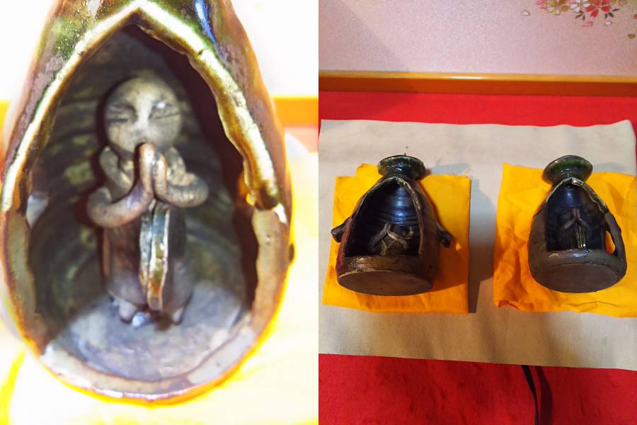 うぶだし骨董古砥部焼き燭台1対(桐箱付) 商品サイズ縦15センチ 横幅9,1センチ 奥行幅8,4センチ 商品状態使用頻度の少ない極上の古織部焼きの燭台1対で中にとても可愛いお地蔵様ついてます。 詳しくは、写真参照でお願いします。 骨董品につきノンクレームノンリターンでお願いします。 発送は、ゆうパック120サイズにて発送いたします。 落札後48時間以内で連絡できる方4日以内入金出来る方入札待ってます。注意喚起当方は、ヤフーオークションの販売のみです。個人ネット販売サイトが個人ネットショップで私ども商品写真文章コピーし貼り付けて半額以下で販売する業者がいます悪徳業者在庫ありませんので注意ください。現在ヤフーオークションに相談かけてます。 違法アップロードになります。法的罰せられます。