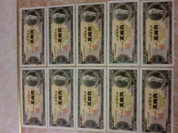 日本銀行券B号50円 高橋50円の美品を10枚セットです。