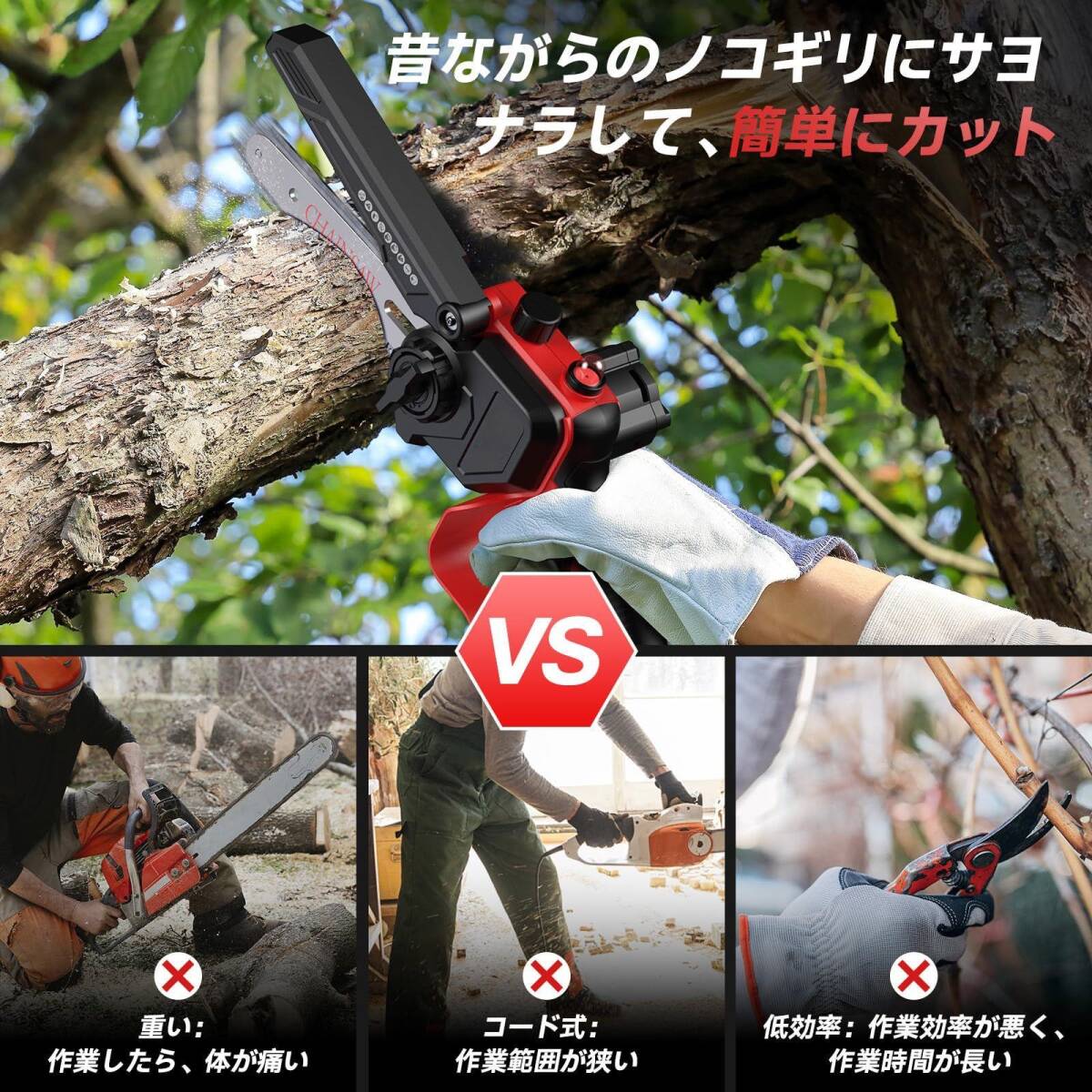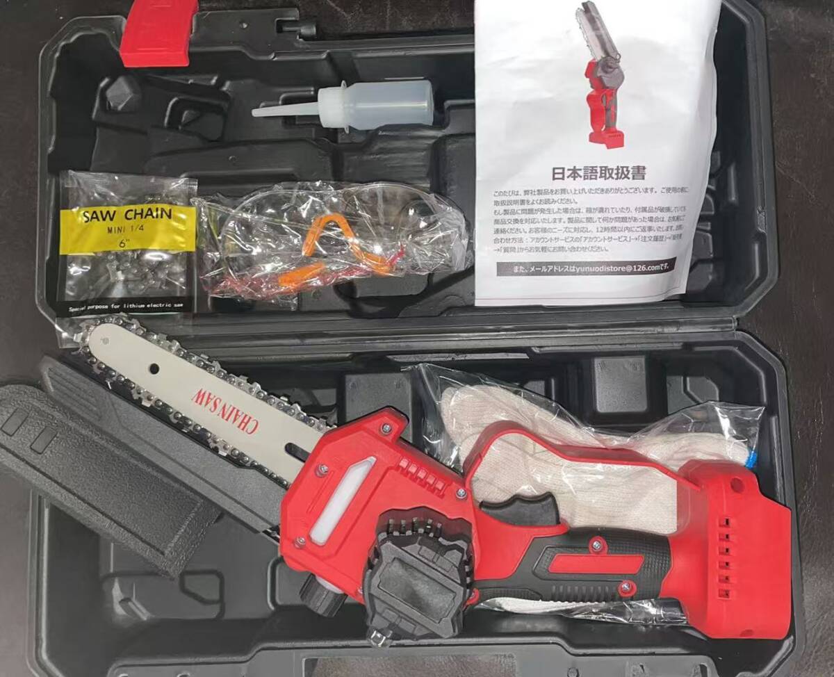 【バッテリー無し】ミニチェーンソー 小型 軽量 電動チェーンソー ハンディチェーンソー 電動のこぎり 枝切り 竹切断 薪作り 農業 園芸用