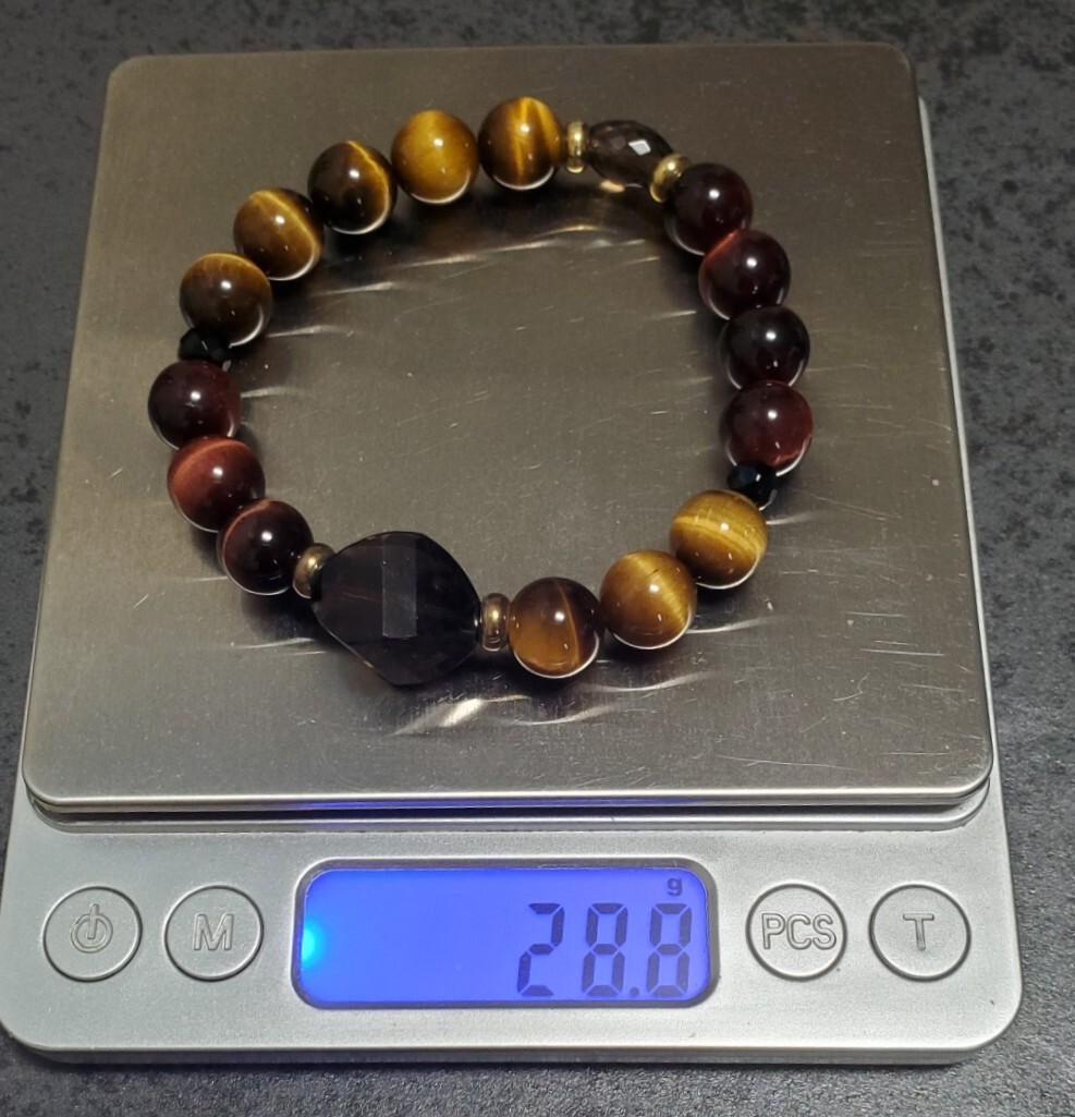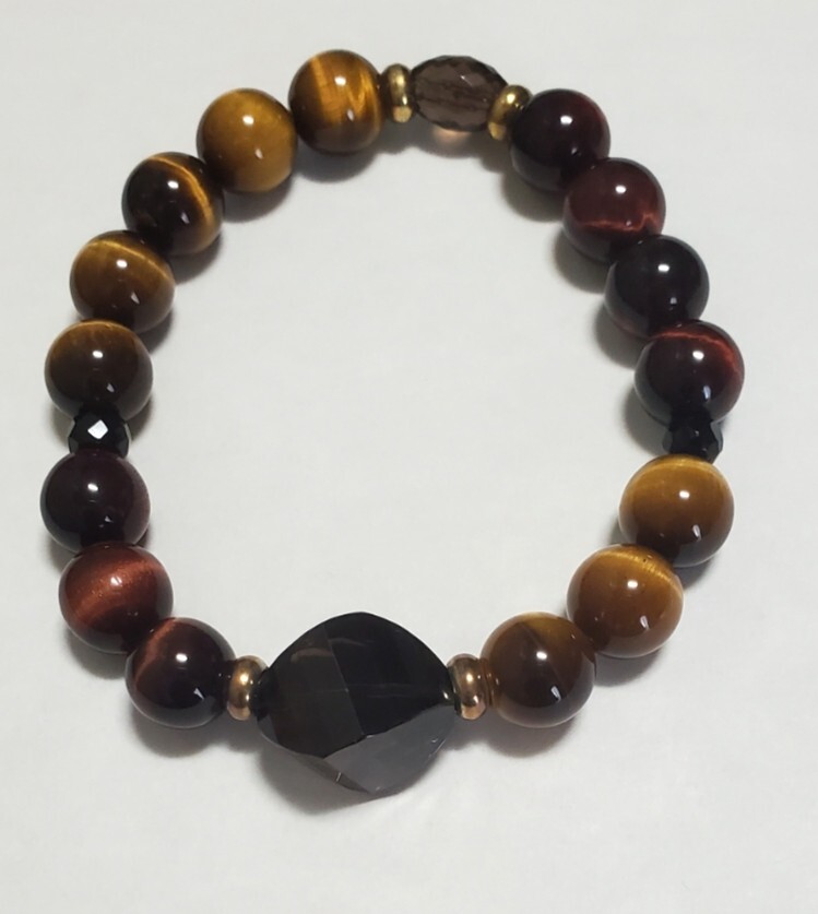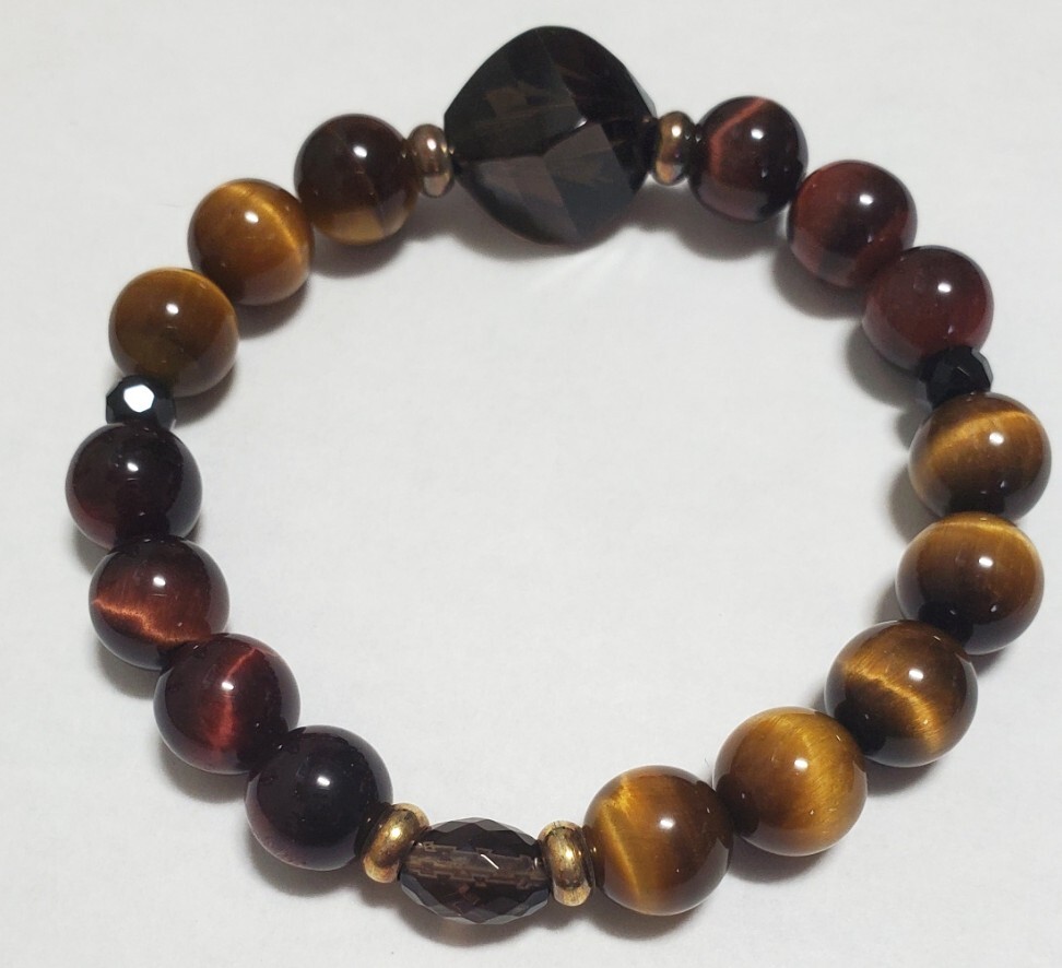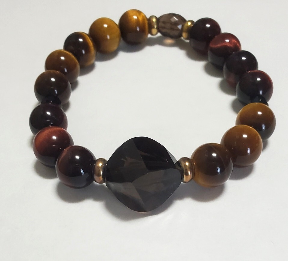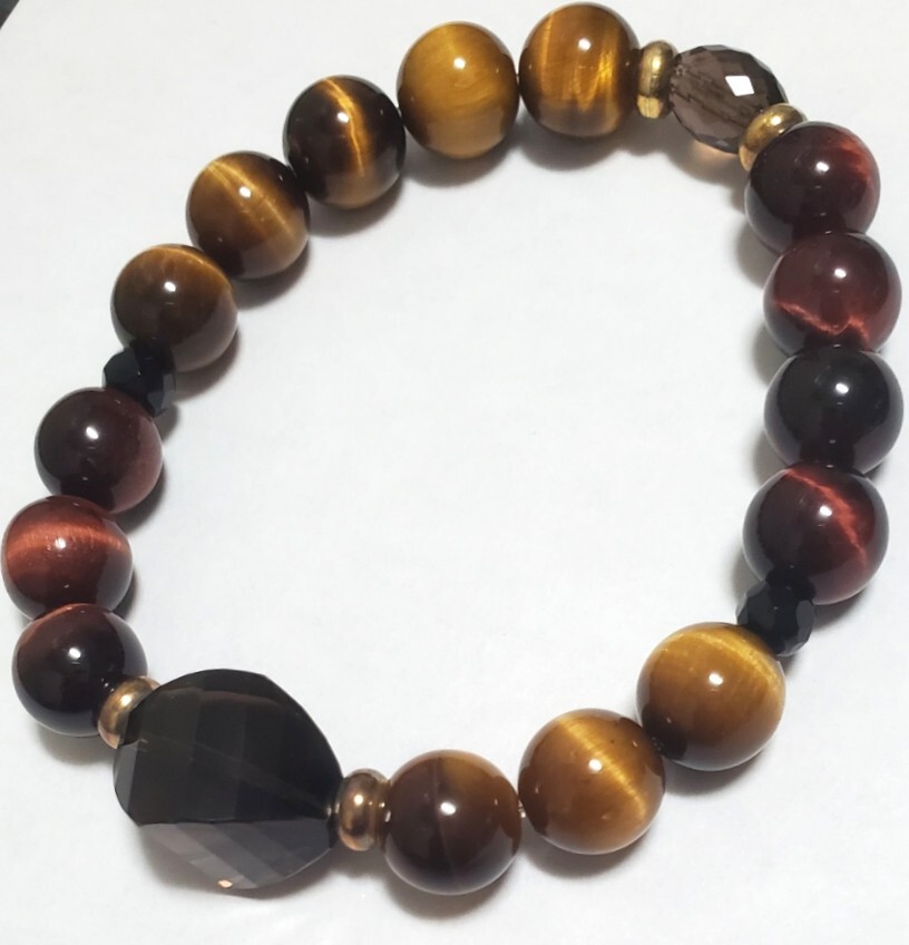 天然石 タイガーアイ スモーキークォーツ  カラーストーン ブレスレット  レディース アクセサリー 28,8g 美品