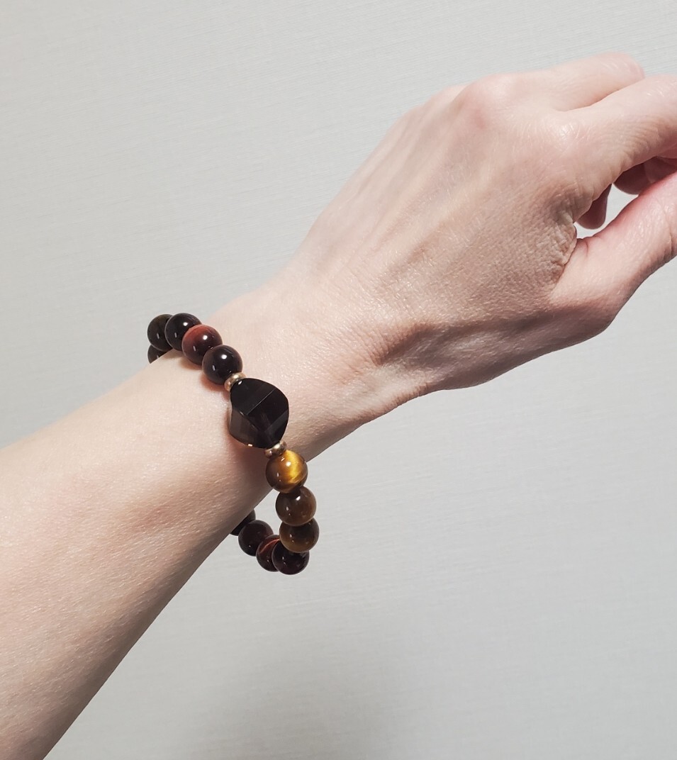 天然石 タイガーアイ  スモーキークォーツ  カラーストーン  ブレスレット  レディース アクセサリー 28,8g 美品