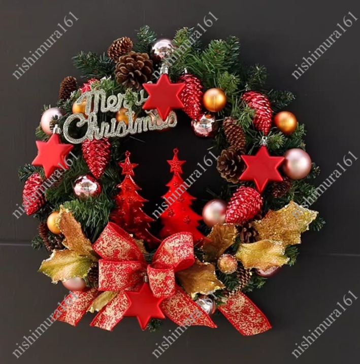 クリスマスリース★高品質クリスマスデコレーションおしゃれ★新品ウォールデコ造花★玄関リース★ギフトラッピング リース★ハンドメイド