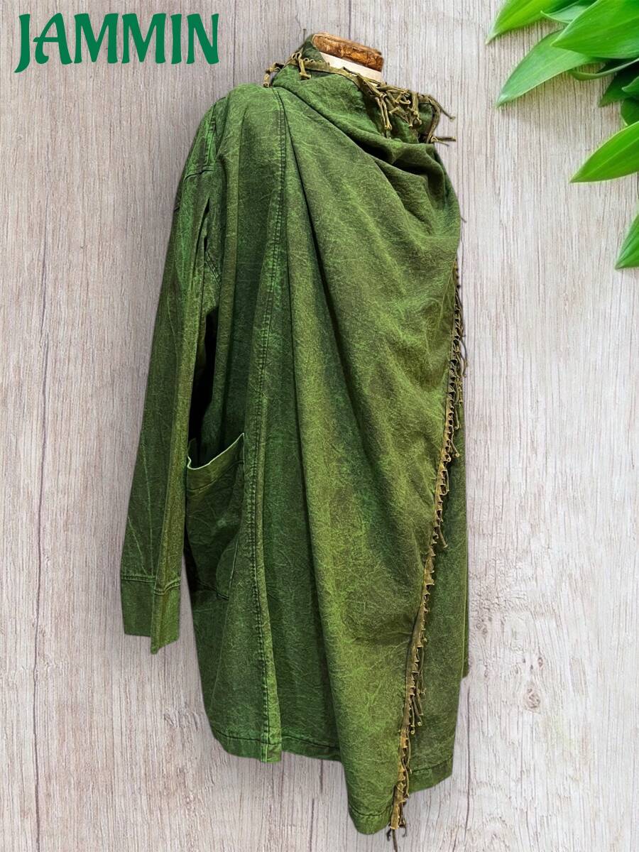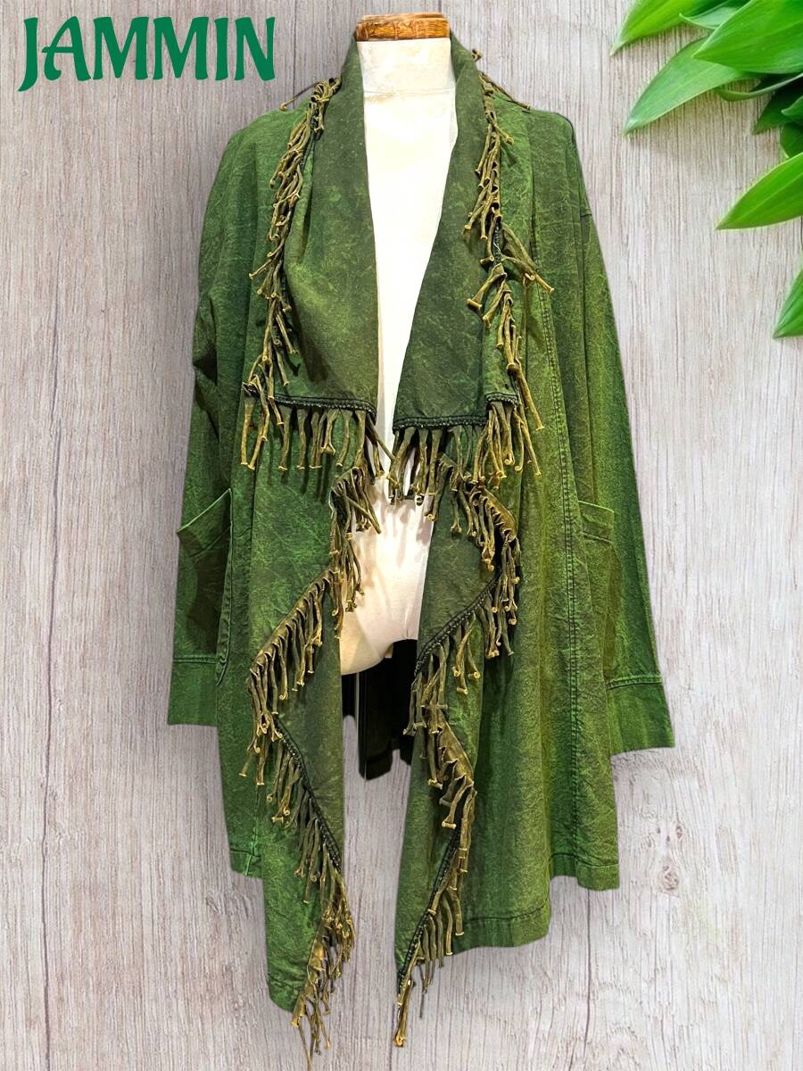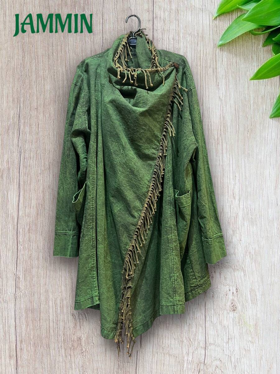 フリンジ付き旅人風ジャケット カーキ アジアン ヒッピー エスニック ジプシー