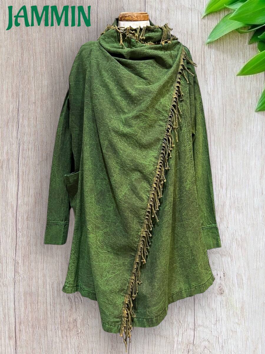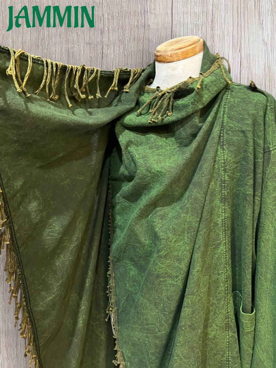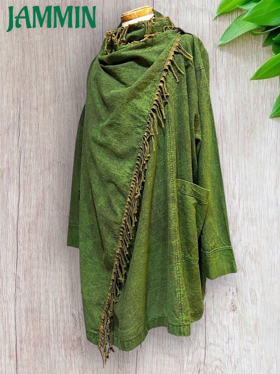 フリンジ付き旅人風ジャケット カーキ アジアン ヒッピー エスニック ジプシー