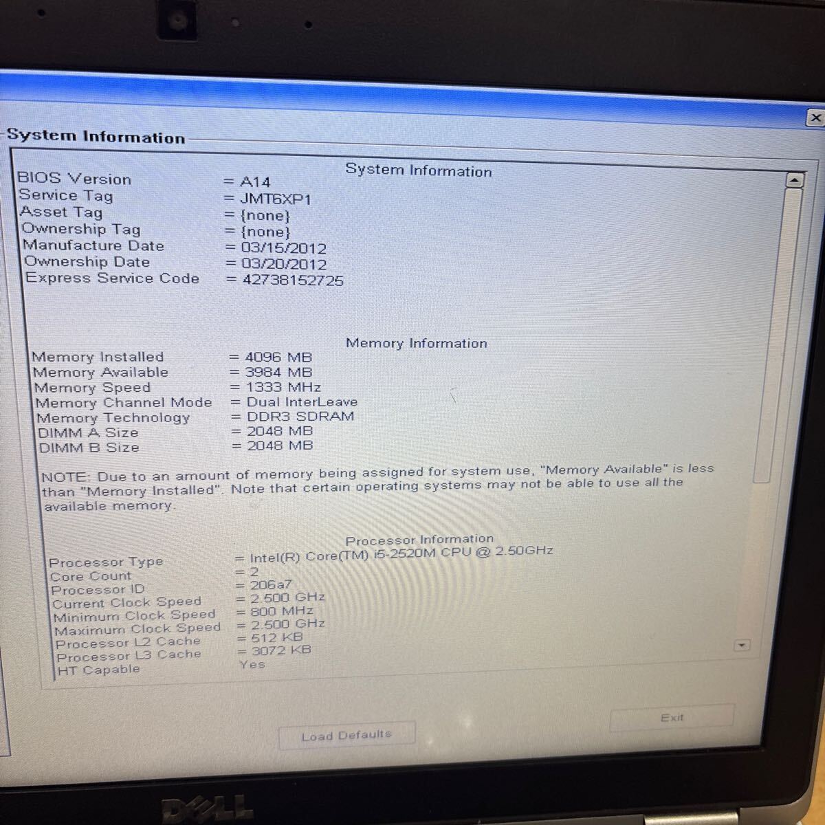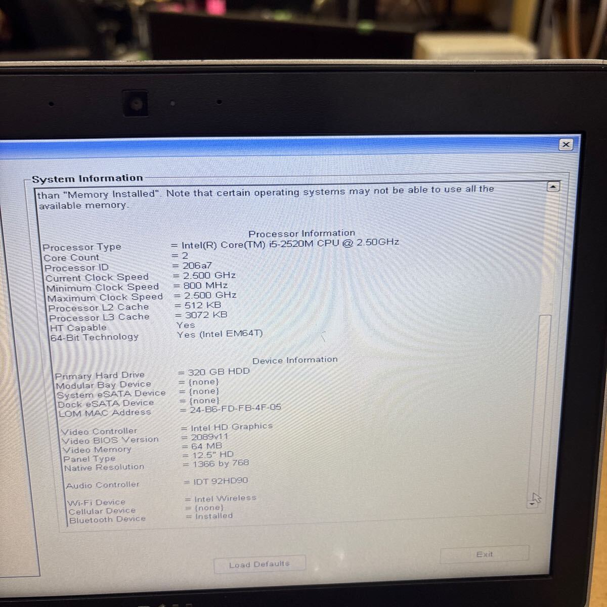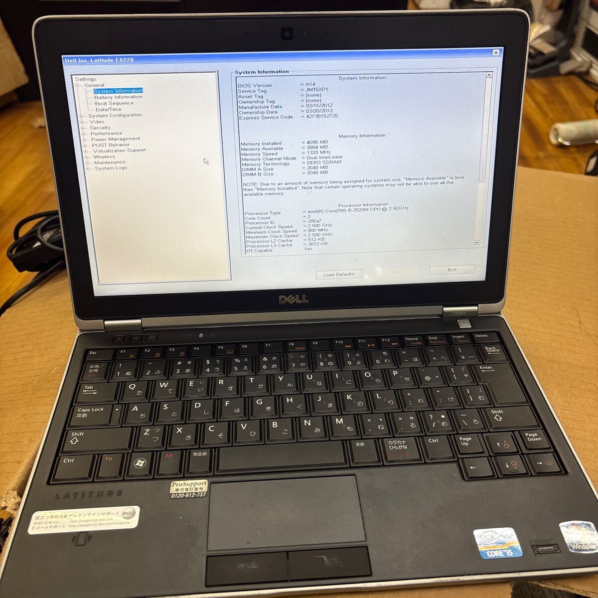 B10-92 DELL Latitude E6220 Core i5-2520M CPU@2.50GHz メモリー4GB 320GB HDD ジャンク