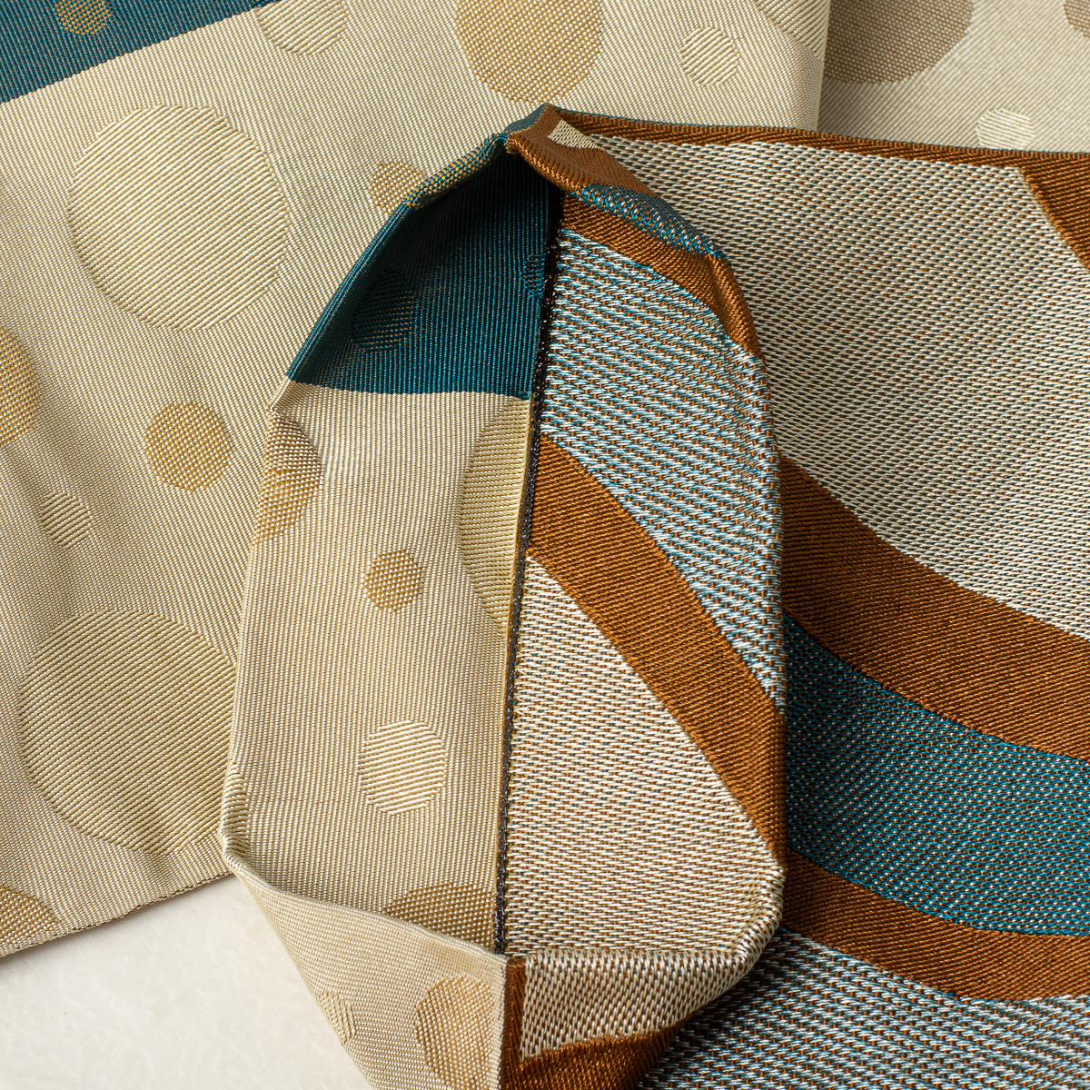 程よくハリ感のあるしなやかな織りで締めやすい袷仕立て(小袋帯 端処理済)
