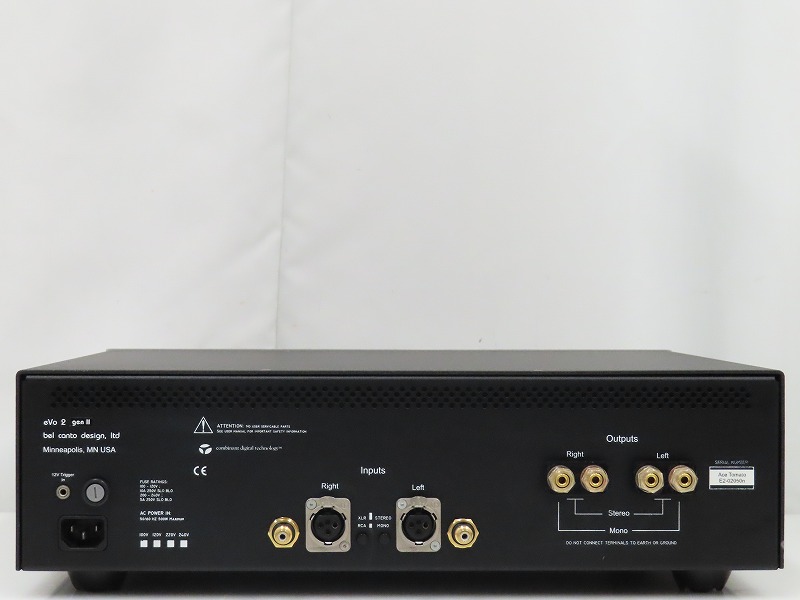 ■メーカー : Bel Canto ■型番 : eVo2 GenII ■外径寸法 : W445×H130×D390mm ■重量 : 20.3kg ※弊社実測の為、多少の誤差はご了承下さい。 【商品の状態 当店での確認内容】 基本動作確認済みです。 電源ケーブルは付属しておりません。 「商品の状態」に関しましては当方主観の目安となります。外観などは中古品で個人差もありますので詳細は画像にてご判断ください。 画像にて不明な点はご質問下さい。 出品商品は画像のものですべてになります。画像に写っているもの以外は付属いたしません。 ※注意※ ヤフオクのシステム上、送料表記が送料未定となっておりますが、送料に関しては全て有償となりますので下記を参照下さい。 【送料 全国一律 2,980 円 沖縄、離島は別途お見積り】 ※送料がお得になるサービスです(下取りシステムのご案内です) ストア決済利用時にクレジットカードやPayPay残高/PayPayクレジットを利用の方は留意点がございますのでこちらを参照上ご利用ください。 当ストアでは商品を安全にお届け出来るよう提携運送会社と協議の上、発泡緩衝材や強度段ボールの使用等 運送会社が指定する梱包方法や資材を採用しております。 より安全にお届け出来るよう商品仕様により梱包サイズが大きくなる場合や個口数が増える事がございます。 【当ストアオークションルールを入札前に必ずご確認ください。】 【落札後の取引手順】 ・落札後は取引ナビにて、必要事項をご入力後、送信ください。 取引終了後48時間(土、日は除く)以内に入力をお願い致します。 ※ご連絡が頂けない場合は落札者様都合でのキャンセルとさせていただきます。 ・落札代金(商品代金+消費税+送料)の入金をお願い致します。 ※大型商品の場合は送料確定後の決済となる為取引ナビを入力頂き、当ストアより送料のご案内が来るまでお待ちください。(土曜、日曜、祝日の場合は翌営業日より順次ご案内いたします) ・お支払い方法はクレジットカード/PayPay残高/PayPayクレジット/PayPay銀行/ゆうちょ銀行のみです。 ※商品代金引換(代引き)のお取り扱いはしておりません。 ※領収証の発行が必要な方はご連絡ください。 ※銀行振込の際の振込手数料はご負担願います。 ・入金確認後に出荷手配を致します。 (原則入金確認後3営業日以内に発送いたしますが、大型や重量のある製品はお時間をいただく場合もございます。) ・発送は当店指定の運送会社の元払いのみでの発送となります。 ※他の運送会社、送料代引き等は致しかねます。 ※落札者様ご自身での運送会社の手配いただく事も可能ですが荷物事故の責任の所在の問題上、梱包は致しかねます。 ※店頭にお越し頂き手渡しも可能(福岡市早良区)です。ご希望の方はご落札後にご連絡下さい。 ・大型/重量物商品の送料につきましては商品の特性上、荷降ろし状況等により送料が大きく前後し運送業者に別途見積りが必要な為、早めのお問い合わせにてお見積り上、入札をお願い致します。 【初期不良の保証について】 ・商品到着後の初期動作不良、また配送中の事故による破損、不具合が有る場合は、商品発送後10日以内に当ストアまでご連絡ください。当ストアでは修理での対応を優先させて頂きますが、修理不可の場合は全額返金させて頂きます。 (商品代金+消費税+送料のお支払い頂いた金額となります) 【初期不良の保証の対象外について】 次の場合は保証の対象外となりますのご留意ください ・ジャンク商品、現状商品、難あり商品での出品商品。 ※難あり商品に関しましては動作確認時に一部動作不良が確認された商品になり、記載している動作確認以外にも、動作不良がある可能性もございます。こちらに関しましても保証対象外となりますことをご理解ください。 ・年代物のオーディオなどで、当店にてわからない範囲で部品が交換されている場合 ・楽器類の特殊機材(マイクロスコープ等)での確認までは行っておりません。気になる方は事前にご質問いただくか、入札をお控えください。 ※初期不良に関しましては【商品の状態】に記載のもの、またそれによって起因する動作不良は対象外です。 ※商品発送後10日を過ぎてのご連絡は対応が出来ませんので、商品が到着しましたらお早めに確認をお願い致します。 【メーカー保証の加入・継承】 ・未使用品、展示品やメーカー保証期間が残っている商品に関しまして、メーカー保証の加入、継承が必要な方は、落札後取引ナビ内にて当ストアにお知らせください。商品発送までにご連絡いただけない場合、メーカー保証の手続きを承れない場合があります。 【評価について】 ・評価不要の場合、必ず取引ナビの「要望欄」にてお知らせください。それ以外でご連絡をいただいた場合、対応できない可能性がございます。一度行った評価はシステム上取り消しが行えませんのでご了承ください。 【入札削除・キャンセルについて】 ・入札後はトラブル防止の為いかなる事情がおきましても入札を削除等は致しておりま