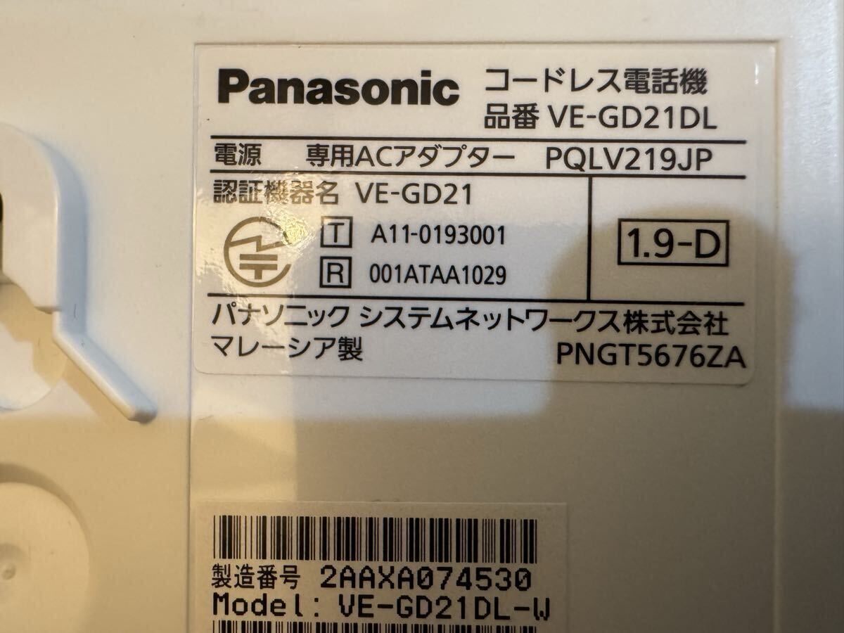 | [売切] 電話機 Panasonic #パナソニック #コードレス #子機 #親機 ホワイト VE-GD21-W | |||||||||