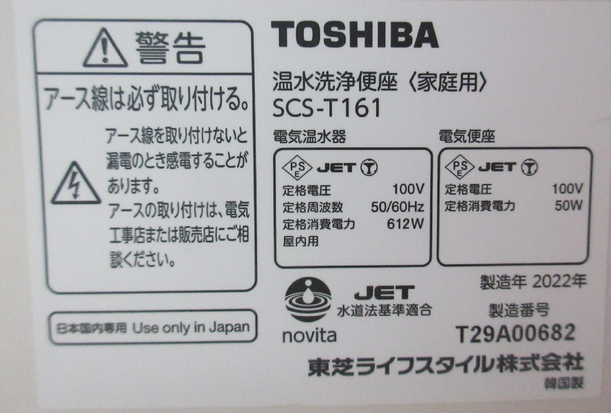 中古 22年製 東芝 クリーンウォッシュ 温水洗浄便座 オート脱臭 暖房便座 ウォシュレット トイレ SCS-T161 [8918]