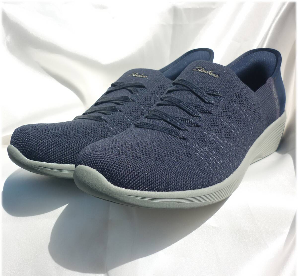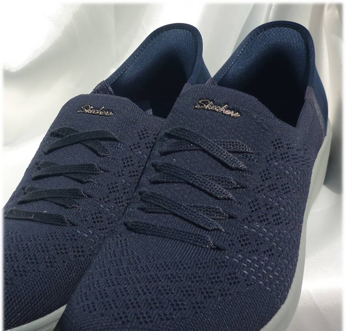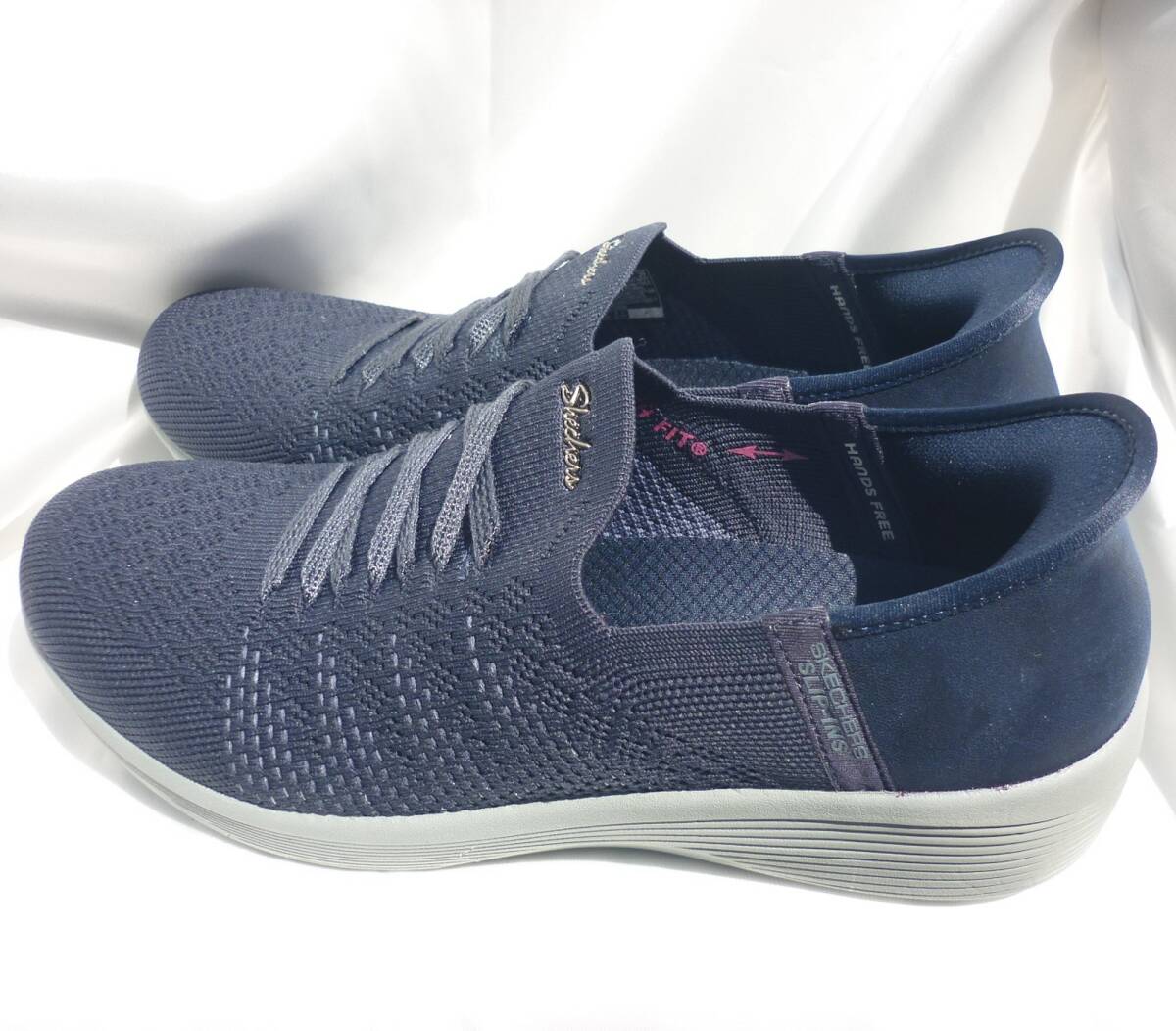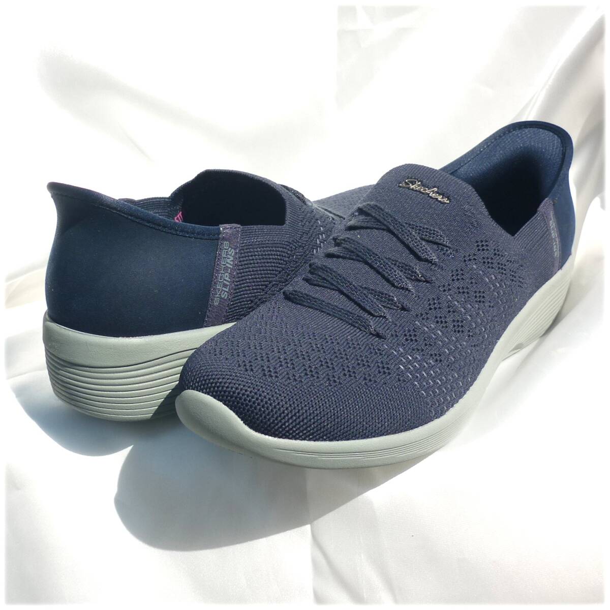 新品未使用品です話題のスリップインズです。かがまず、かかとを持たず、ハンズフリーでスルリと着脱可能です。◎スリップインズ愛用者の感想です。ご参考に。「かかと部分にクッションがあり、きっちりフィットするのでとても脱げにくく感じる」「かかとをふまないので靴がかた崩れがせず長持ちする」さりげないスタイルと抜群の履き心地を兼ね備えた、Skechers Hands Free Slip-ins(スケッチャーズ ハンズフリー スリップインズ):アーリア - スウィフトリー。Heel Pillow(ヒールピロー)デザインを採用したヴィーガン(動物由来成分を含まない)シューズ。Stretch Fit(ストレッチフィット)ニットのアッパー、固定式ストレッチレース、クッション性のあるSkechers Air-Cooled Memory Foam(スケッチャーズ エアクールドメモリーフォーム)インソールが特長です。独自のHeel Pillow(ヒールピロー)で足をしっかり固定クッション性のあるSkechers Air-Cooled Memory Foam(スケッチャーズ エアクールドメモリーフォーム)コンフォートインソールStretch Fit(ストレッチフィット)のデザインで靴下のような快適さを実現履きやすいNo-Tie Fit(ノータイフィット)固定型ストレッチレースフロント、ストレッチニットのアッパーフレキシブルでトラクション性の高いアウトソールヒールの高さは3.2cm(1 1/4インチ)洗濯機洗い可能スケッチャーズ正規品(直営店で購入) 品番158918 定価10890円 509サイズ感:小さめ。0.5cm大きめをご検討下さい。(個人差がございますので、あくまでも目安ですが今までにご購入いただいたお客様はそれで丁度よかったとの声をいただいております)★商品タグは26cmですが25.5cmのカテゴリーに出品しております。